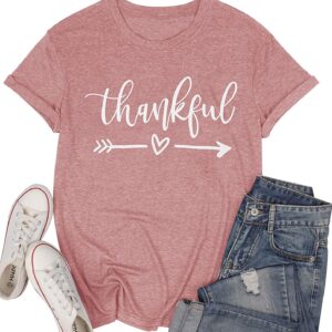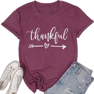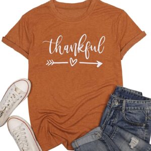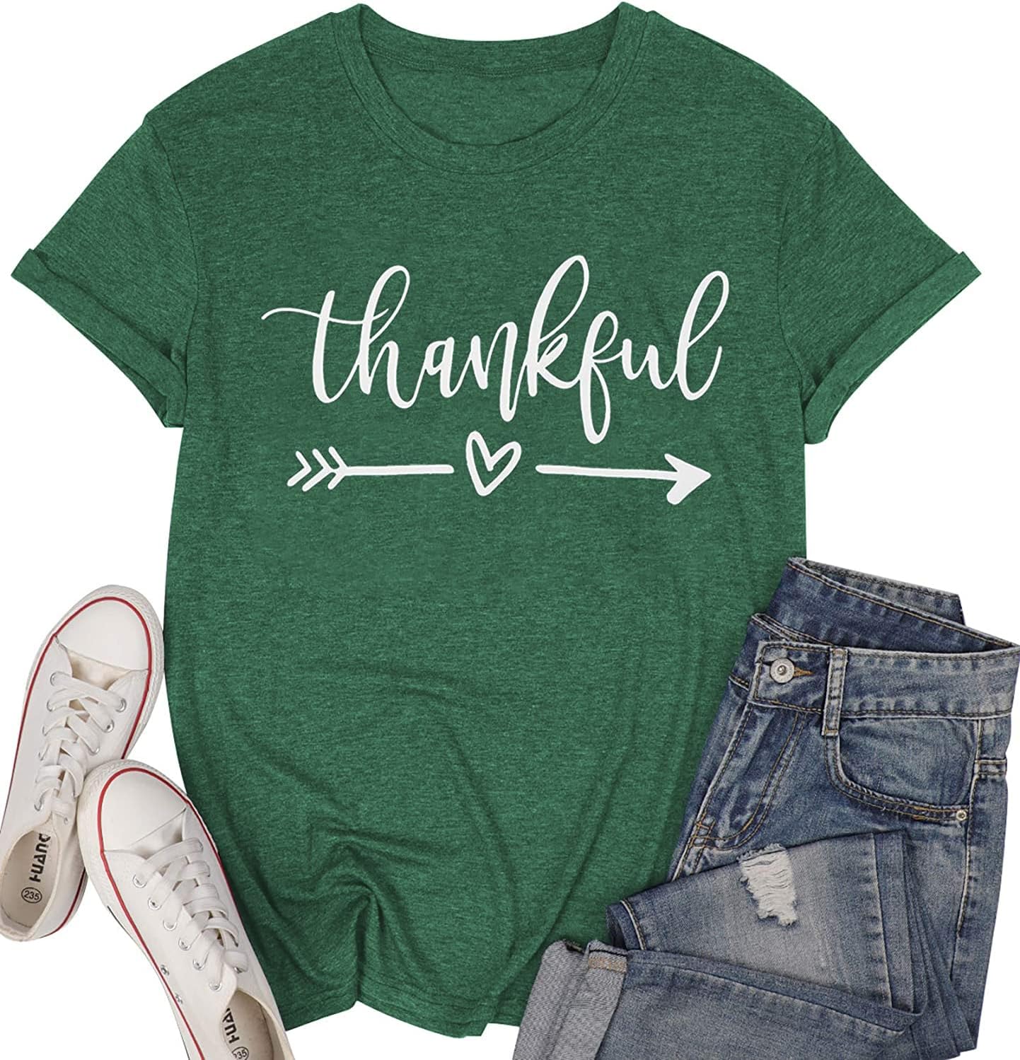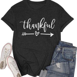NIUBIA Women’s T Shirts Summer Tops Simple Heart Graphic Shirts Sayings Short Sleeve Vacation Casual Blouse Thankful Tee