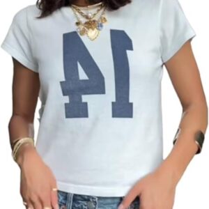 One Shoulder Oversized Tshirts Short Sleeve Y2k Baby Tees Summer Crop Top Jer…