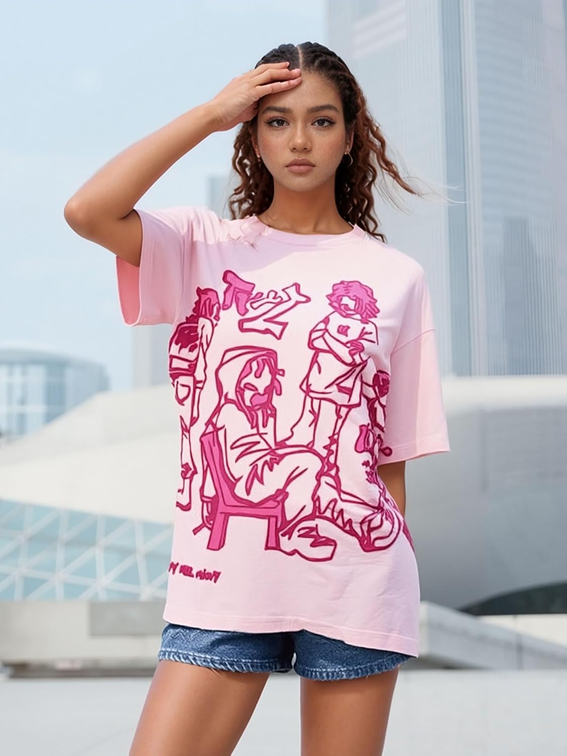 Oversized Graphic Tees Men Vintage Y2K Print Shirts Streetwear Unisex Harajuku T-Shirts