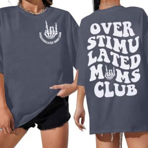 Overstimulated Moms Club Shirt Oversized Mama Shirts Funny Mom Life Graphic Tees