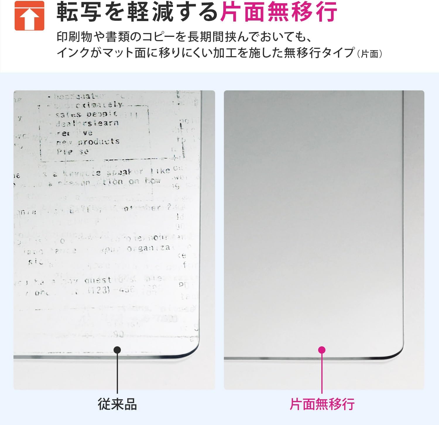 One-sided non-migration: Even if you hold copies of prints and documents for a long time, the ink will not transfer to the back of the mat.