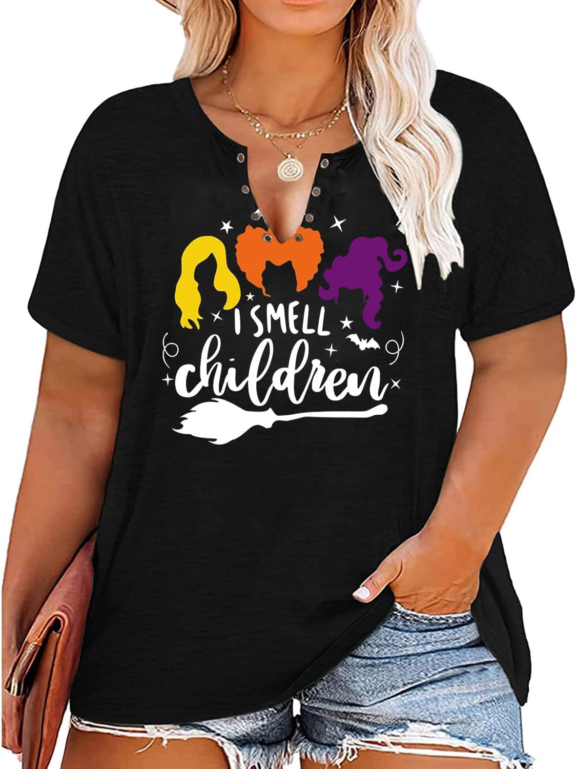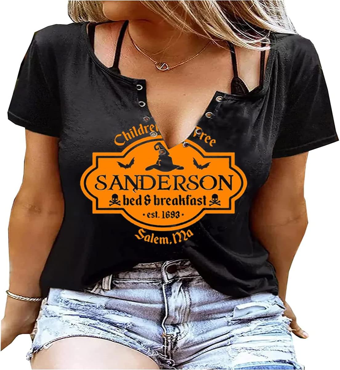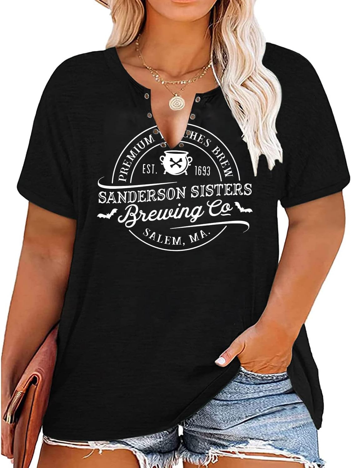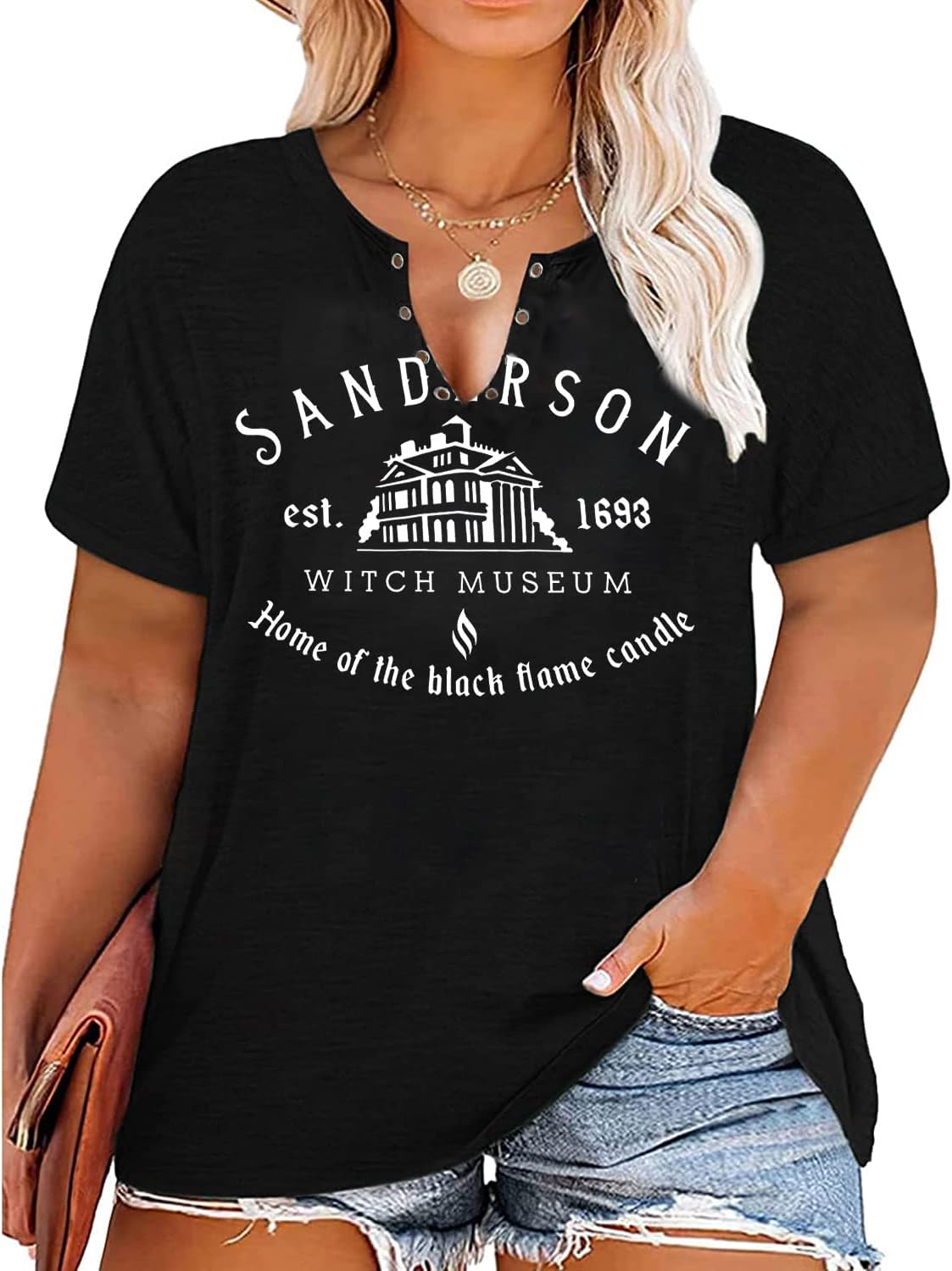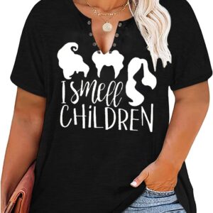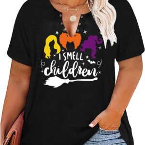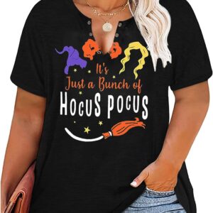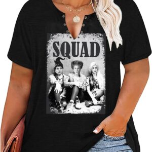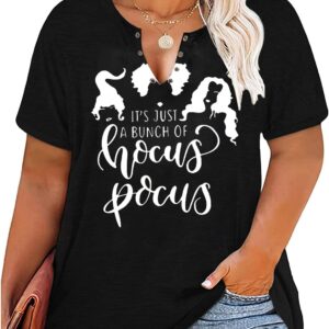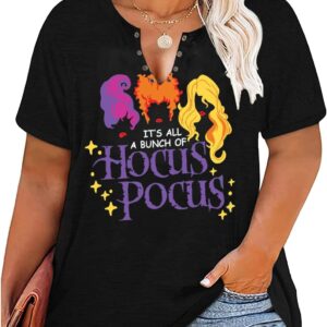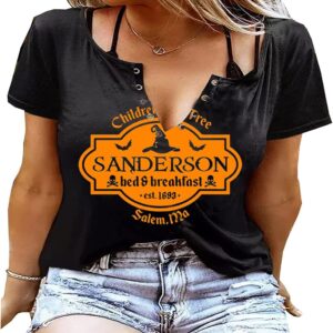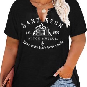 Plus Size Halloween V-Neck T-Shirt Women Sanderson Witch Museum Graphic Tees Hocus Pocus Short Sleeve Shirts Tops