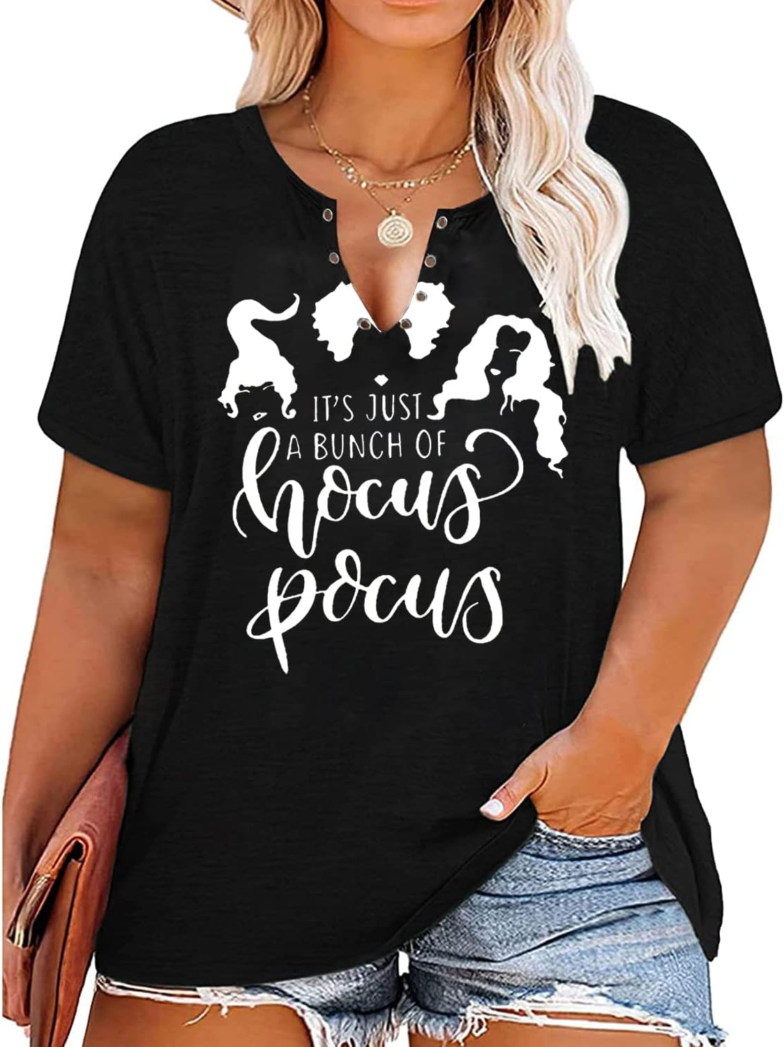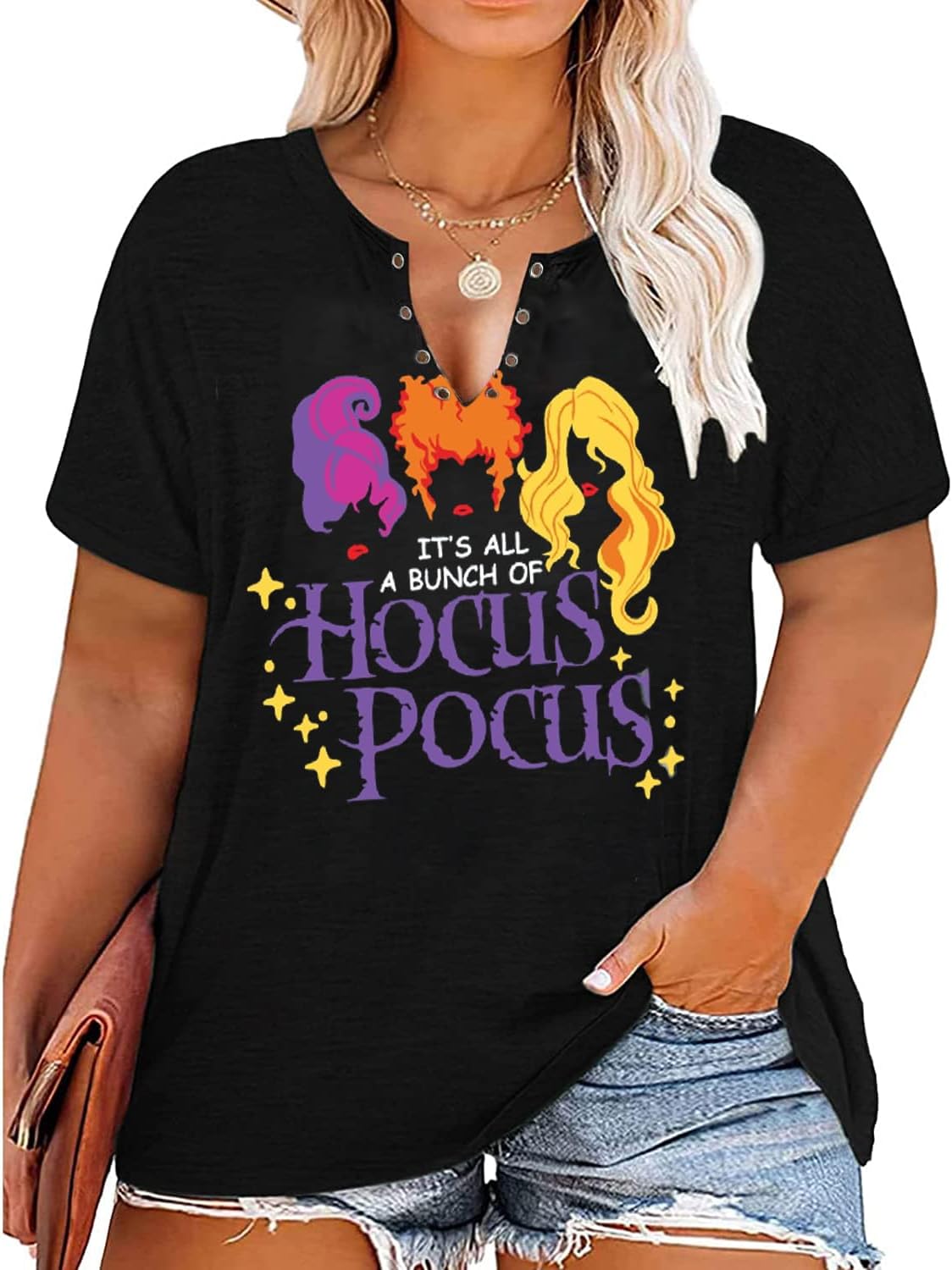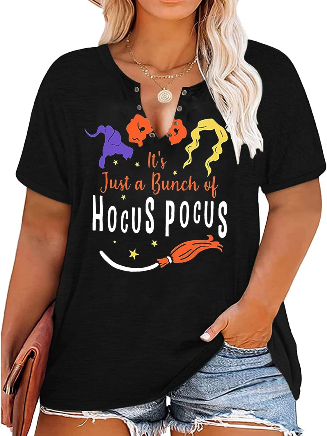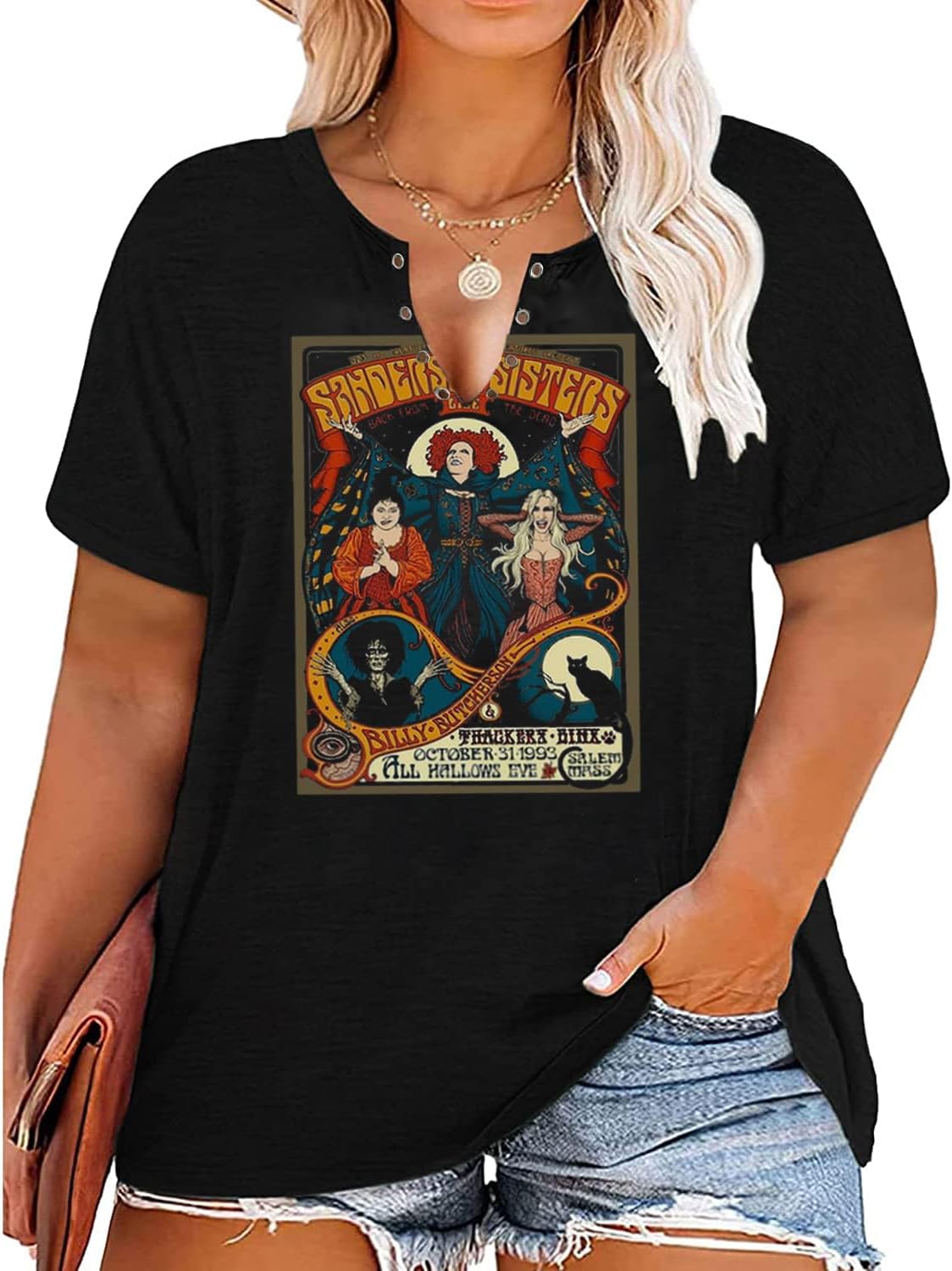 Plus Size Halloween V-Neck T-Shirt Women Sanderson Witch Museum Graphic Tees Hocus Pocus Short Sleeve Shirts Tops quantity