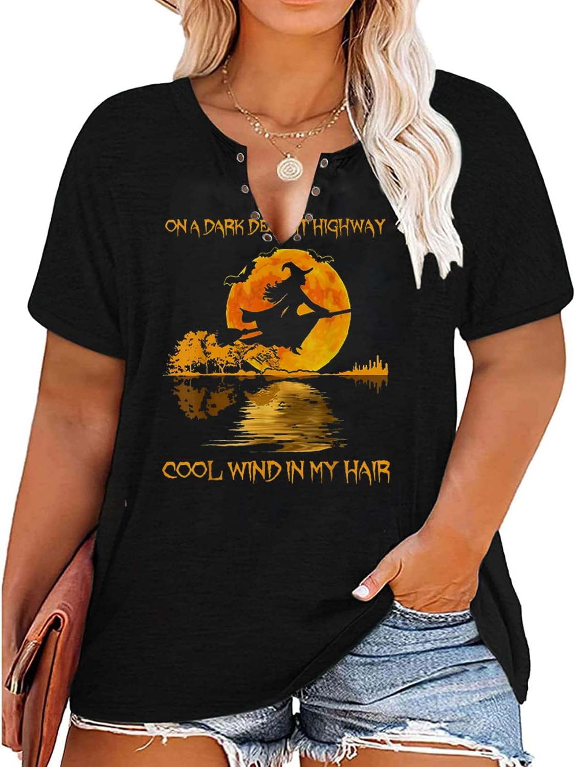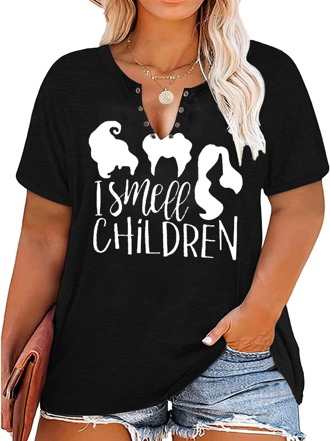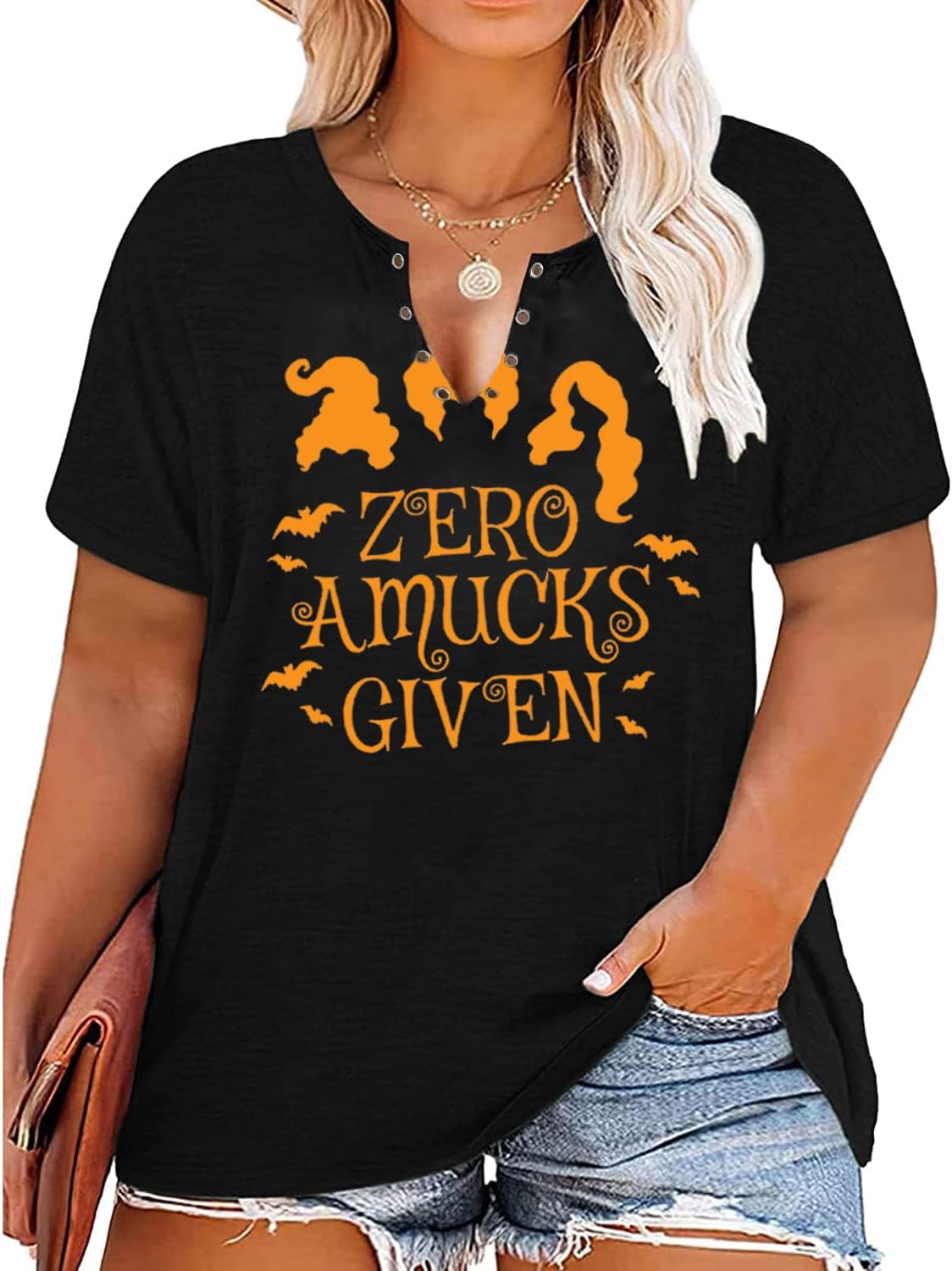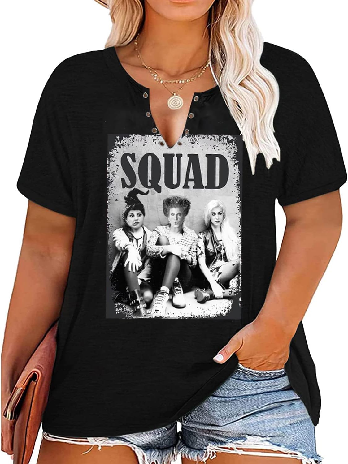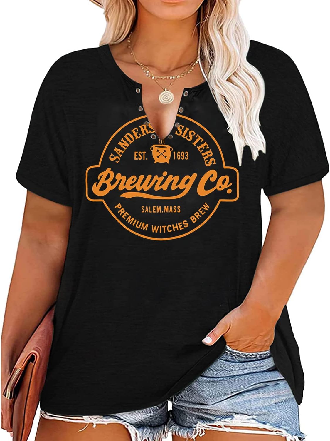 Plus Size Halloween V-Neck T-Shirt Women Sanderson Witch Museum Graphic Tees Hocus Pocus Short Sleeve Shirts Tops quantity