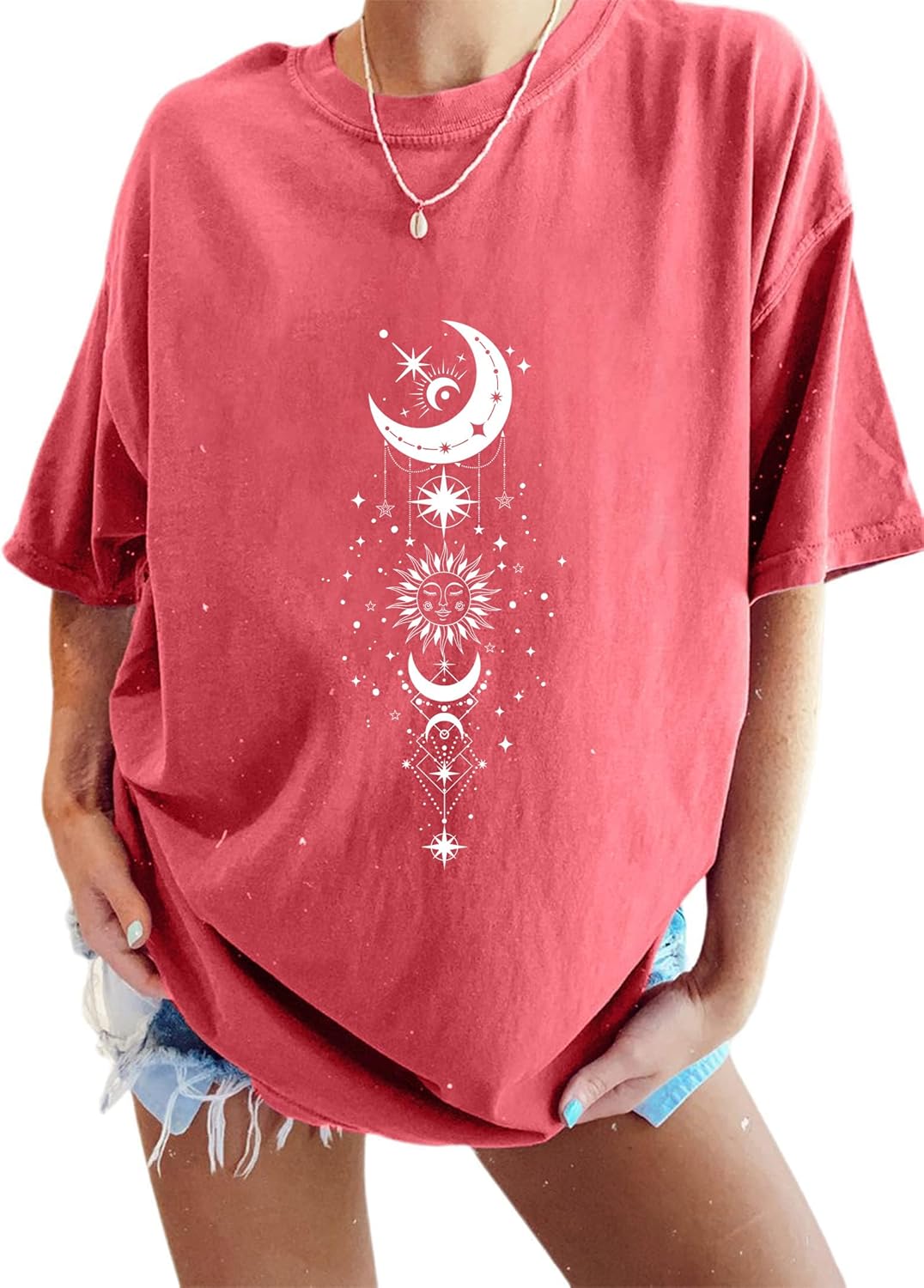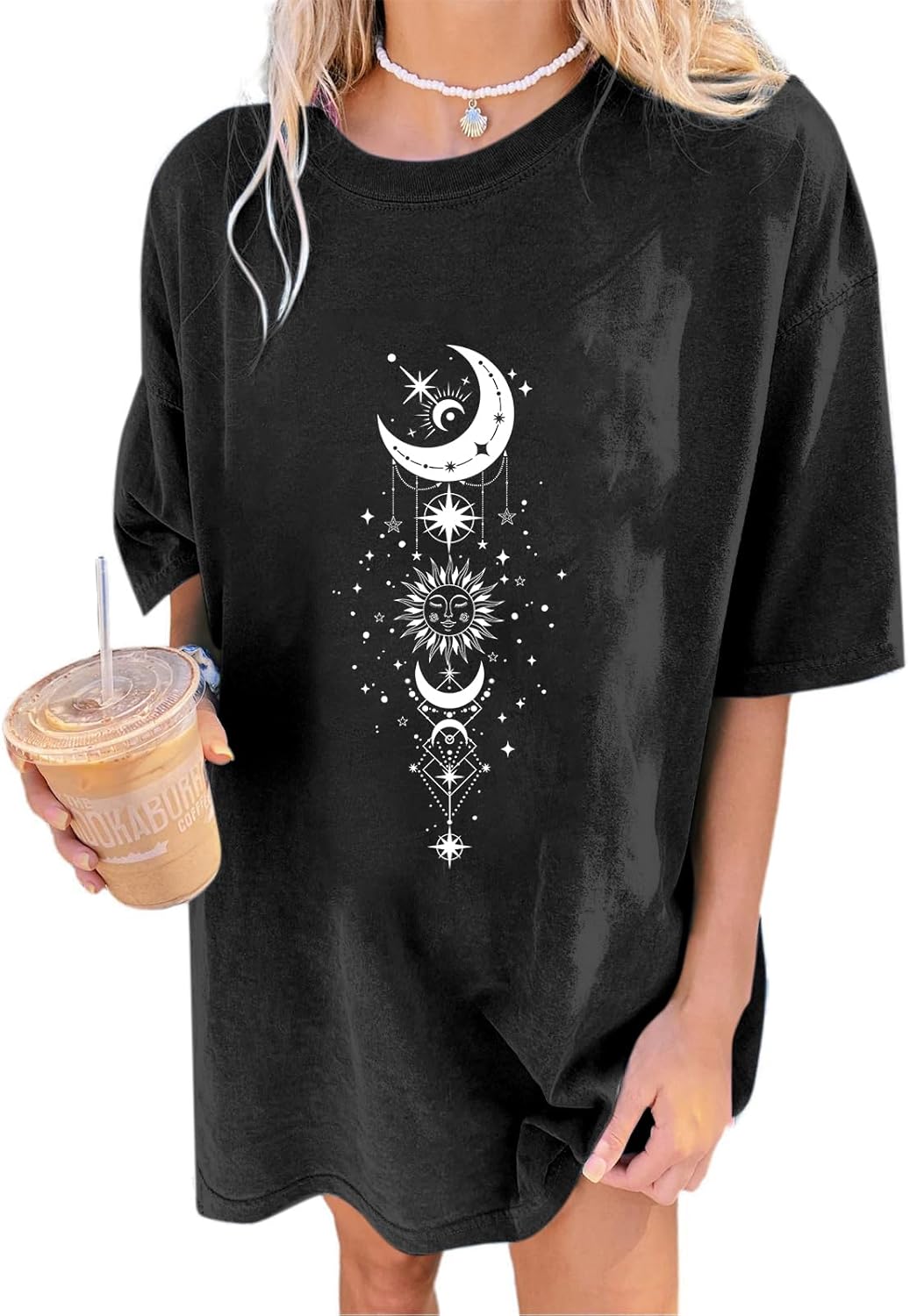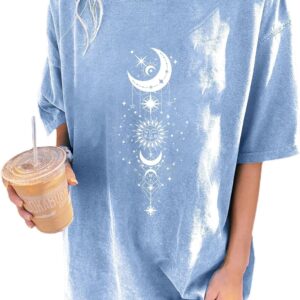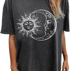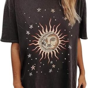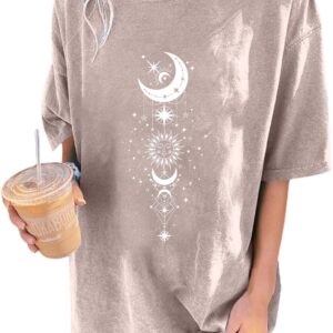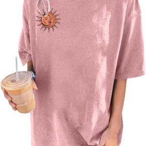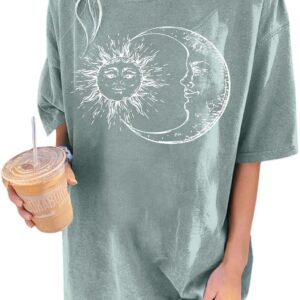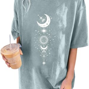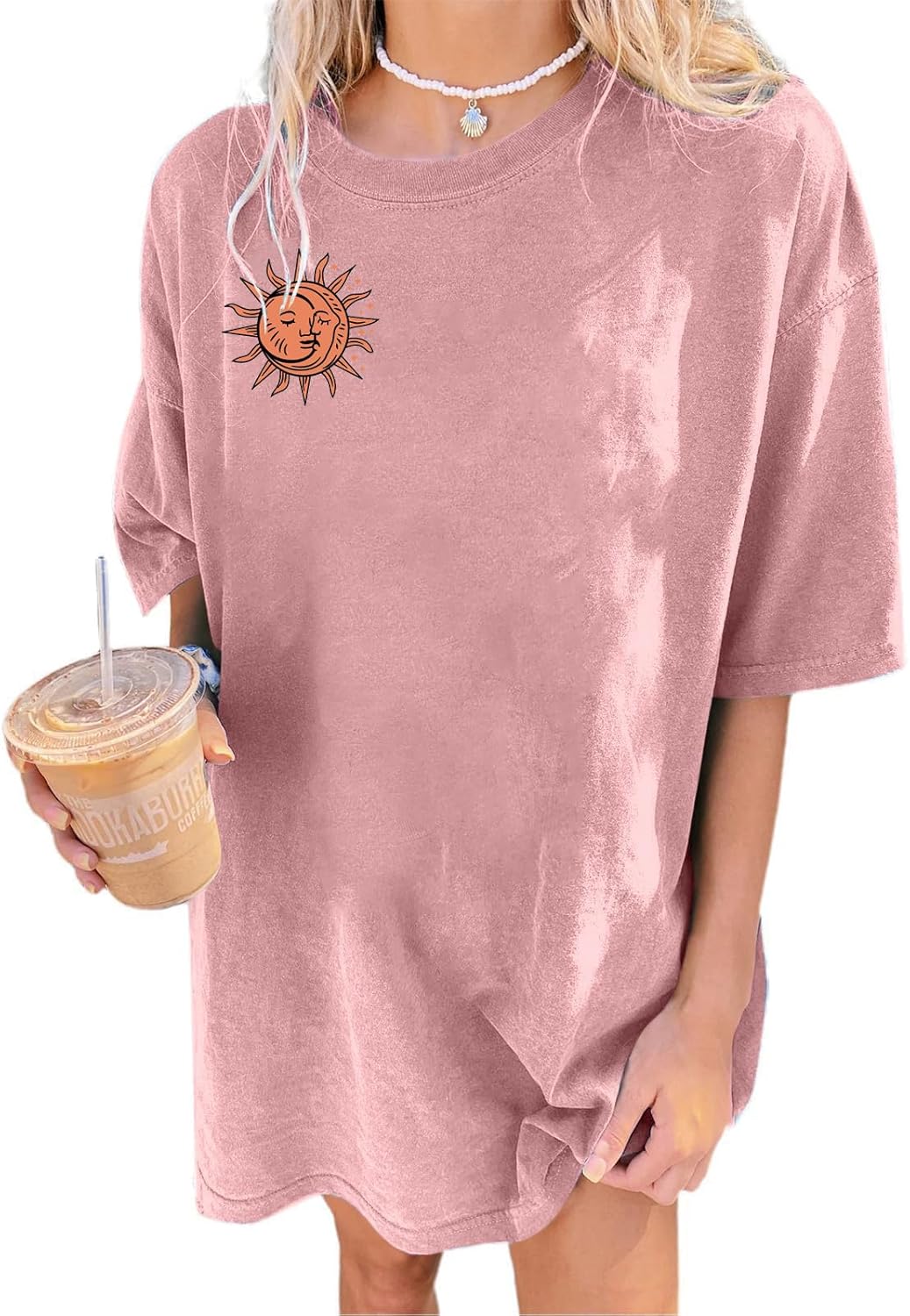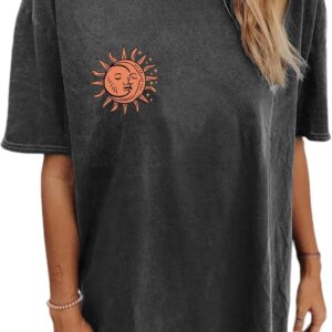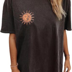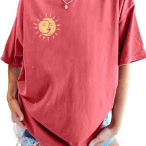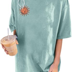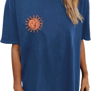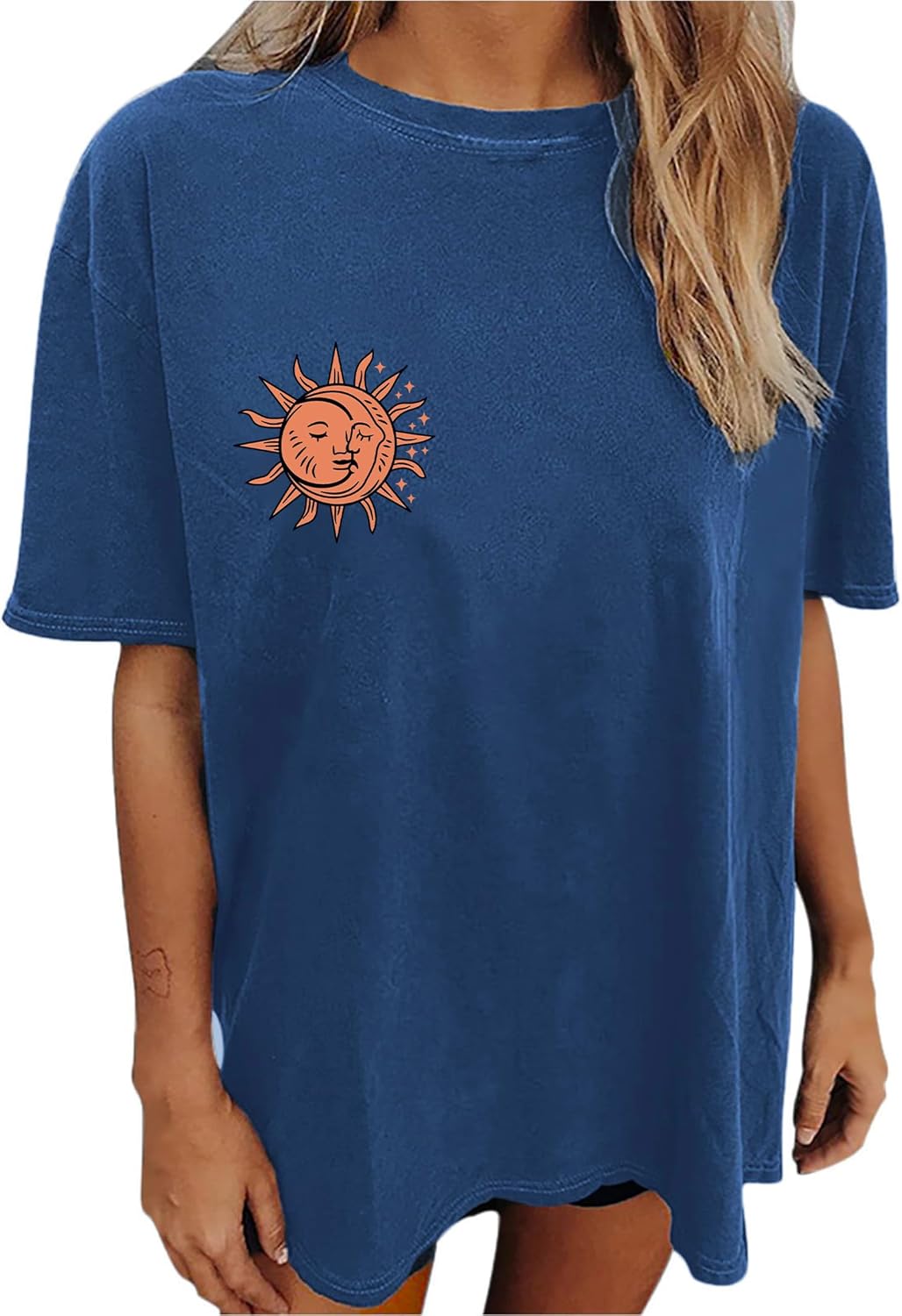 Remidoo Women’s Casual Oversized T Shirt Short Sleeve Graphic Tee Letter Sun Moon Shirts