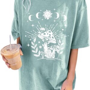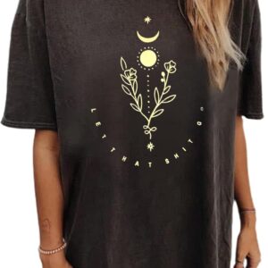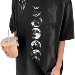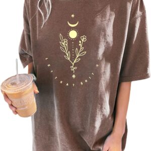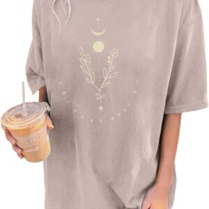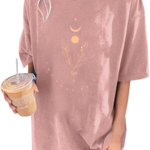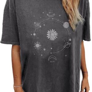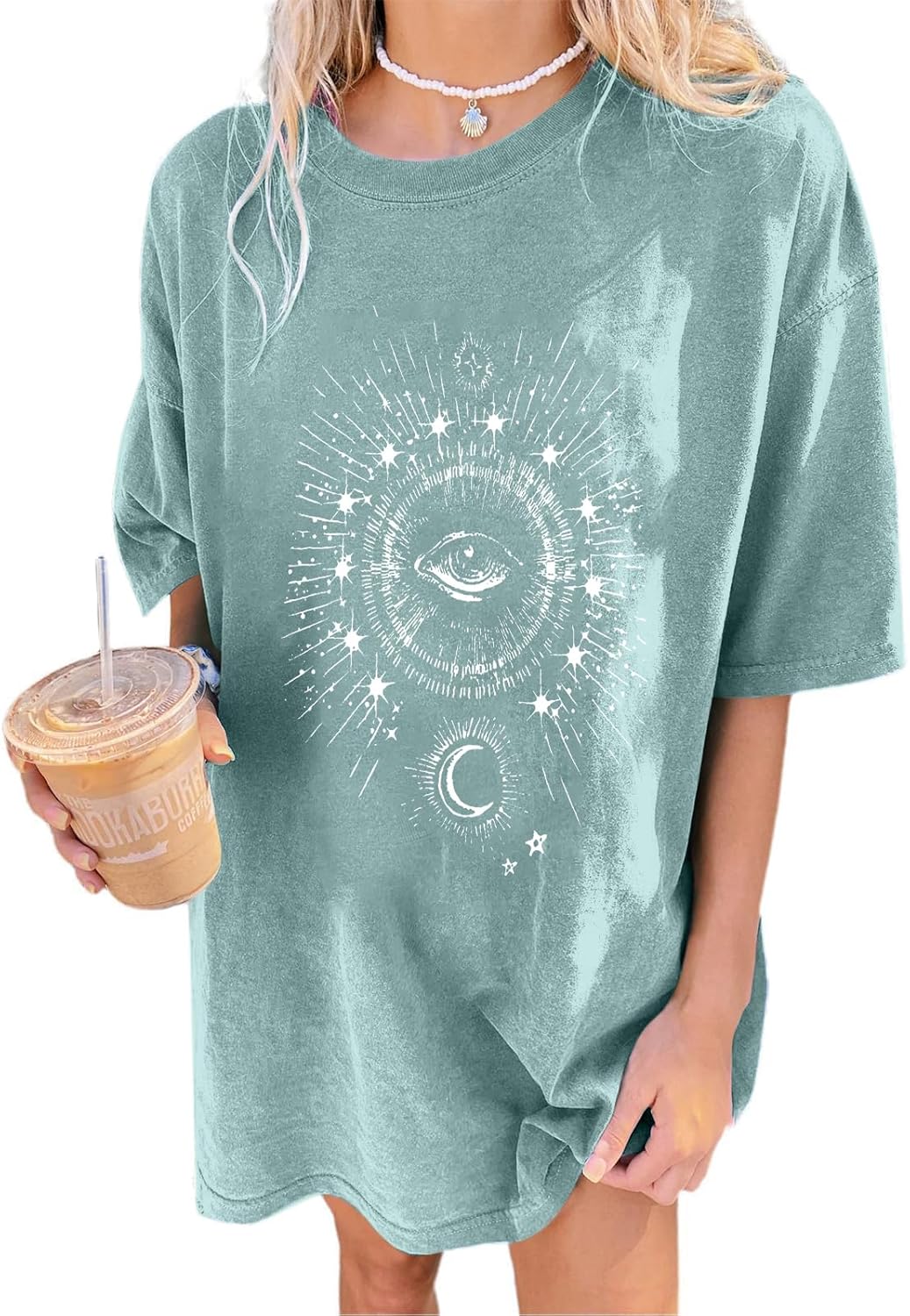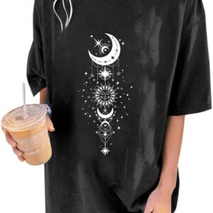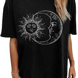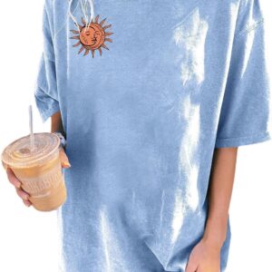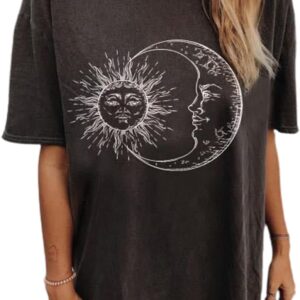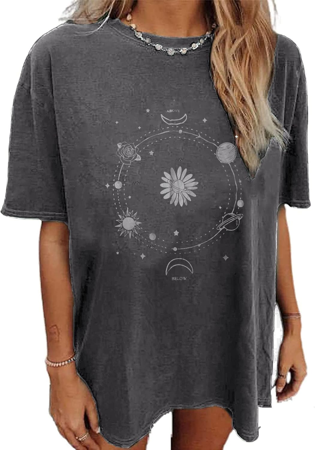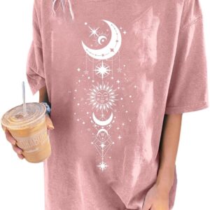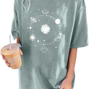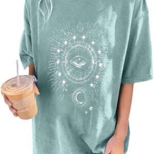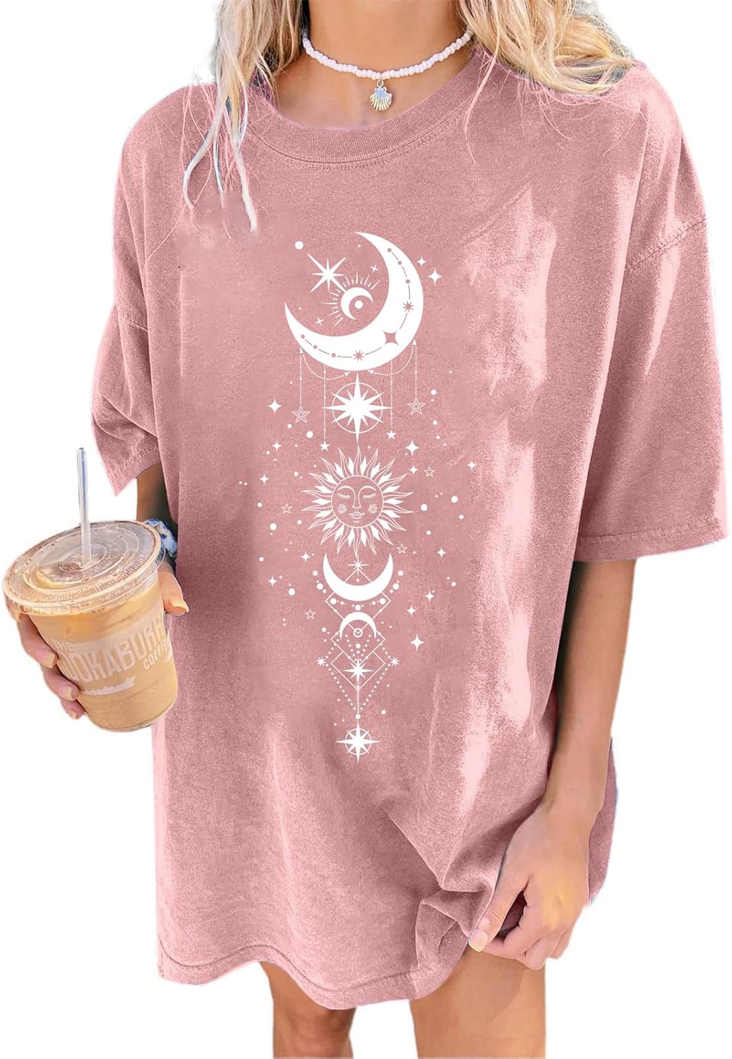 Remidoo Women’s Casual Oversized T Shirt Short Sleeve Graphic Tee Letter Sun Moon Shirts