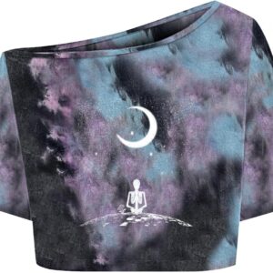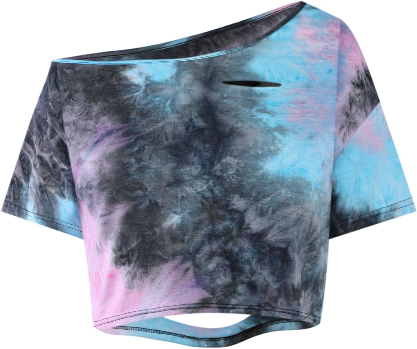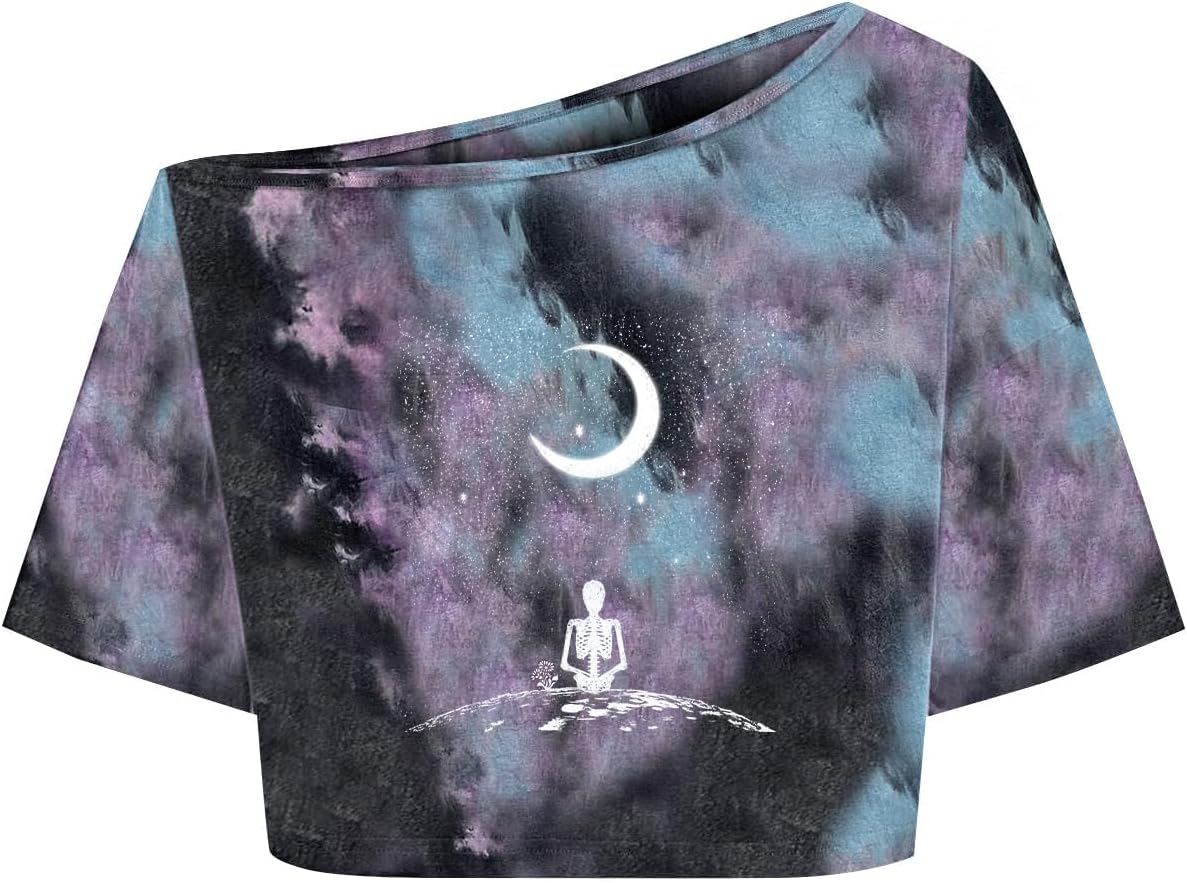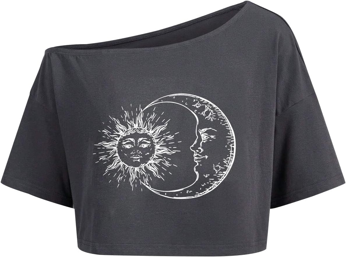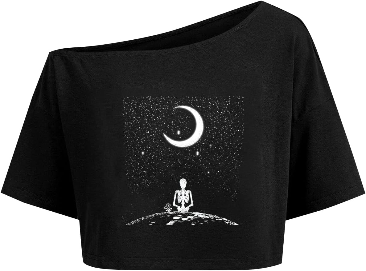 Remidoo Women Graphic Tee Off The Shoulder Crop Top Short Sleeve Loose Tops