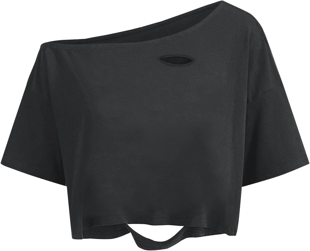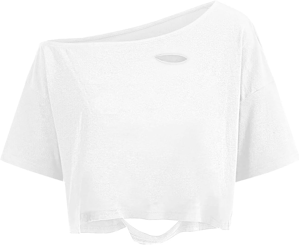 Women Cropped T Shirt One Shoulder Crop Top Casual Summer Tees