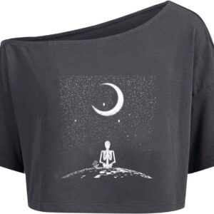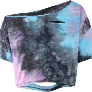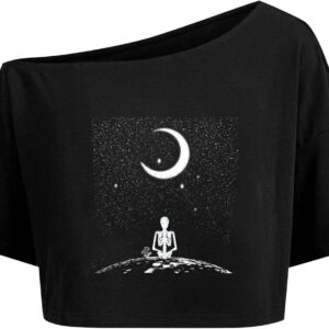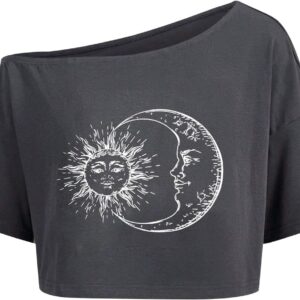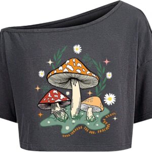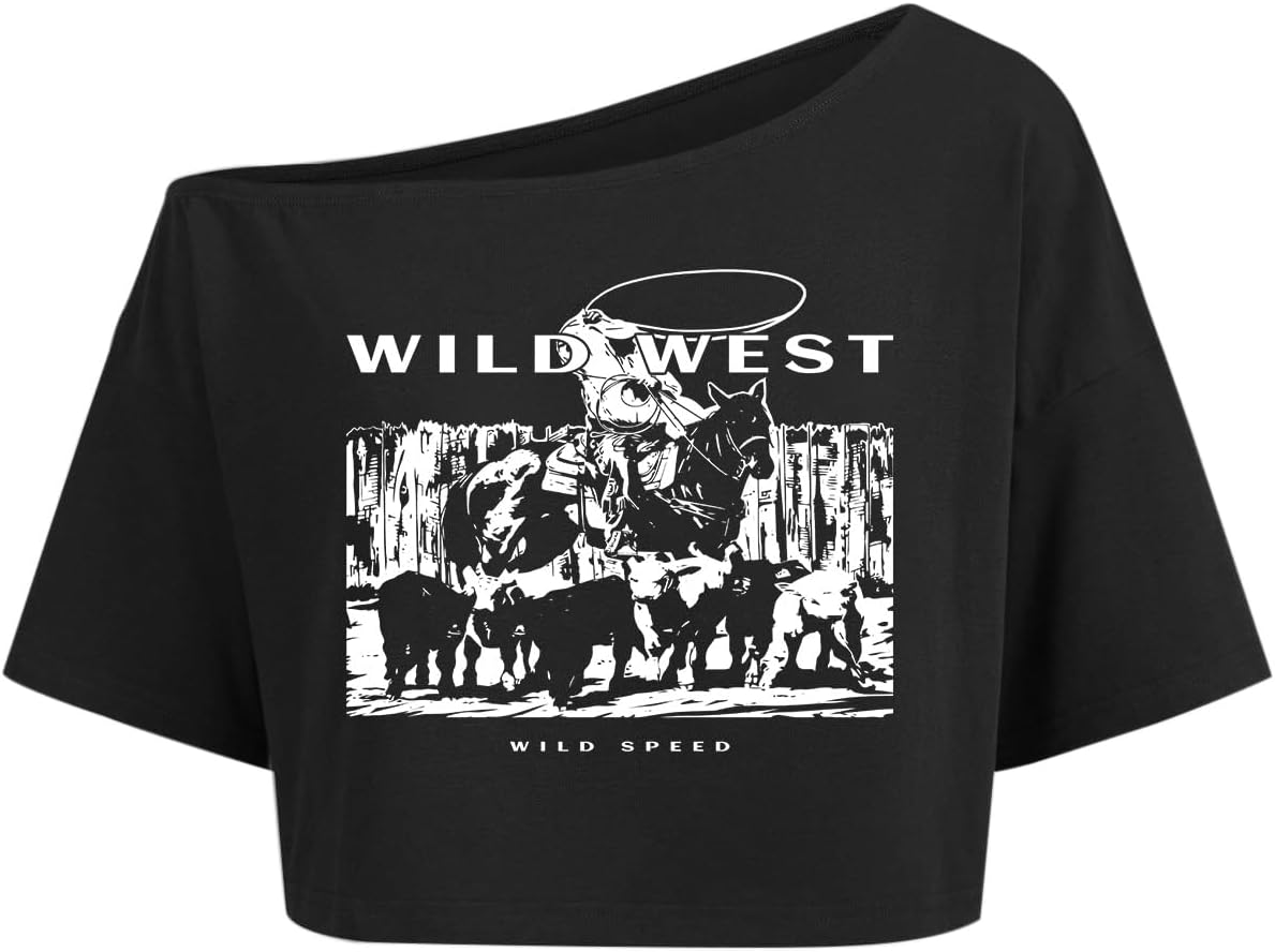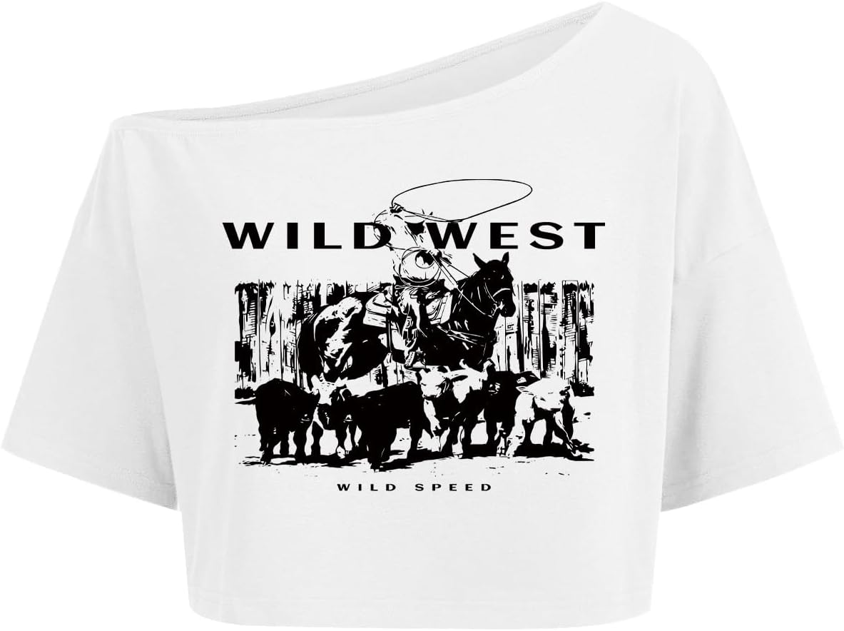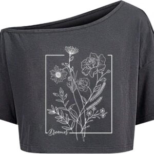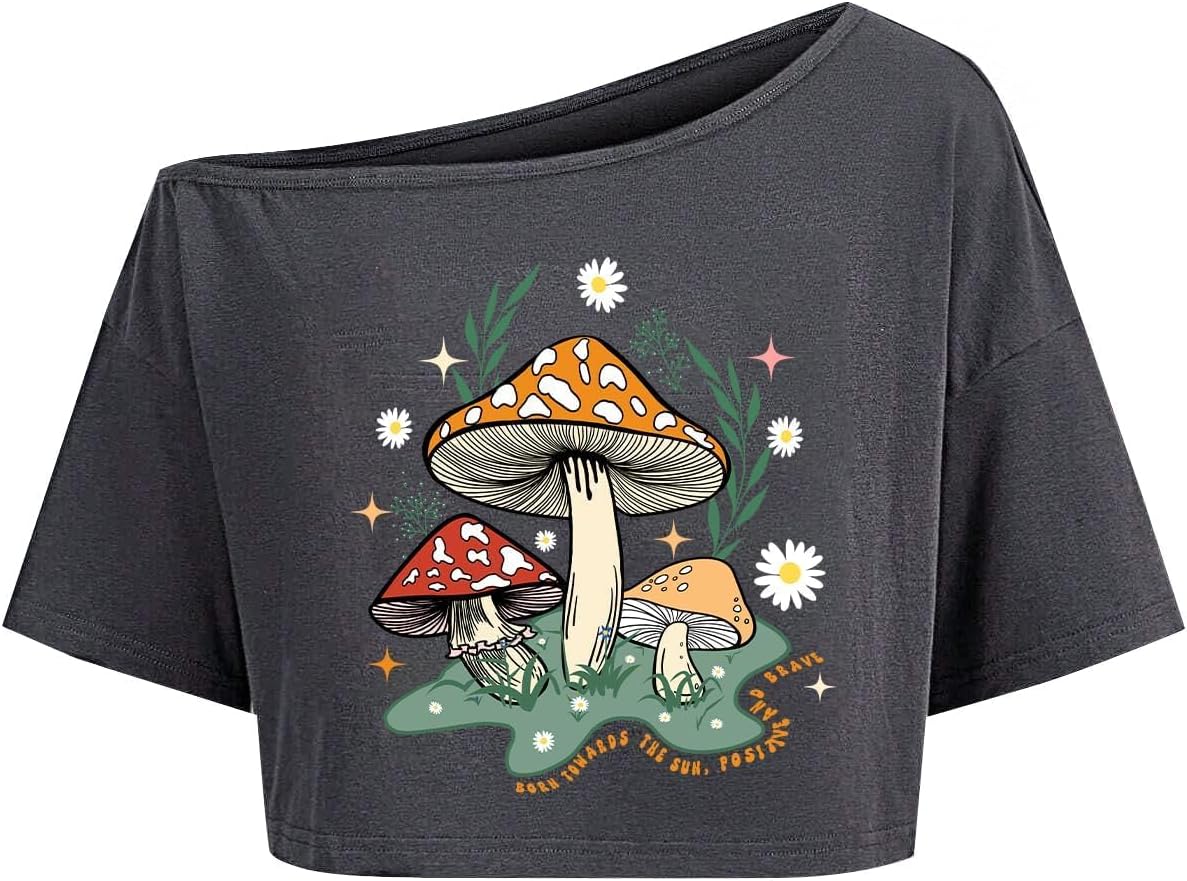 Remidoo Women Off Shoulder Cropped Shirt Graphic Tee Loose Short Sleeve Crop Top