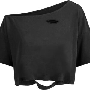 Women Asymmetrical Neck Baggy Relaxed Fit Crop Top