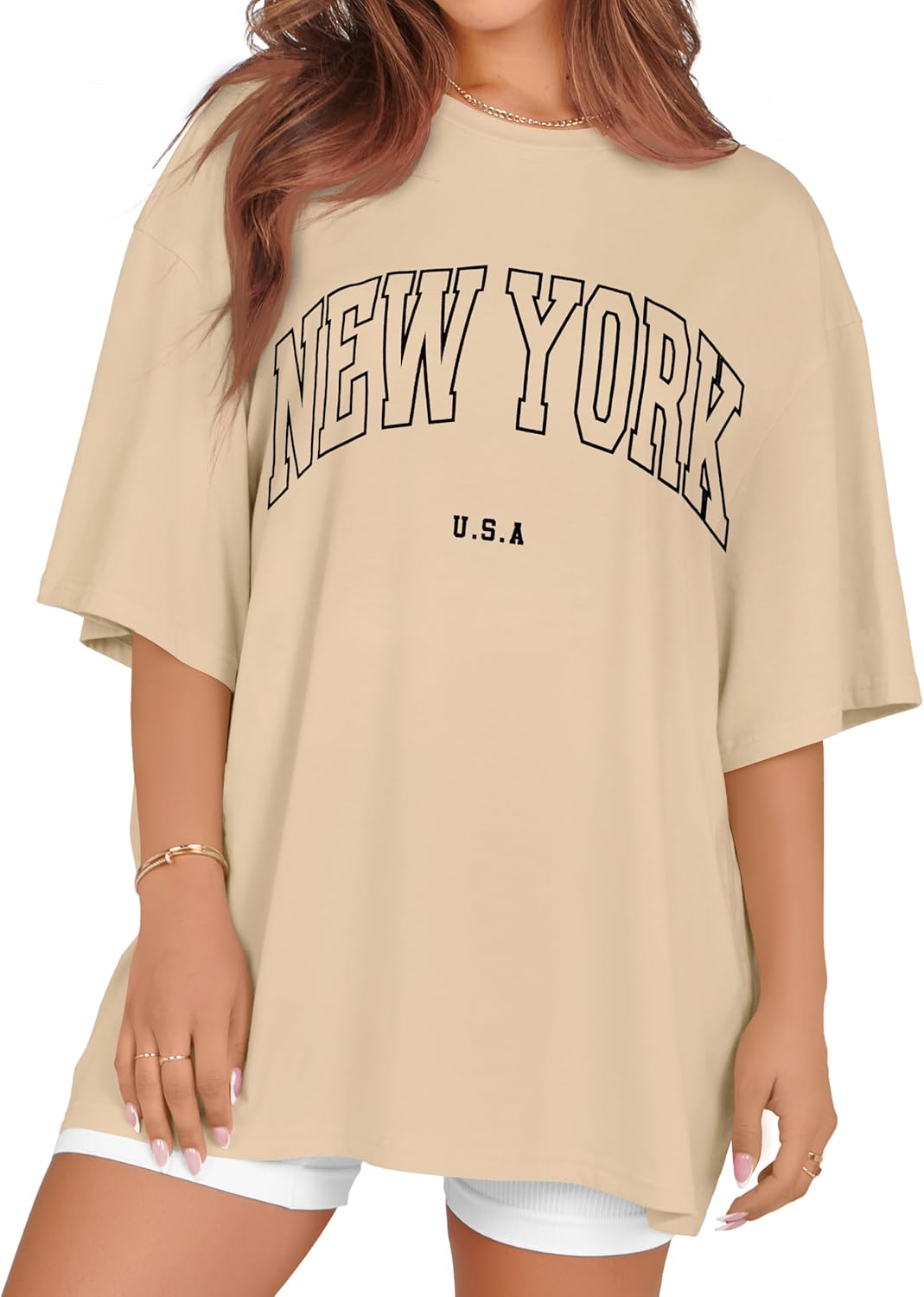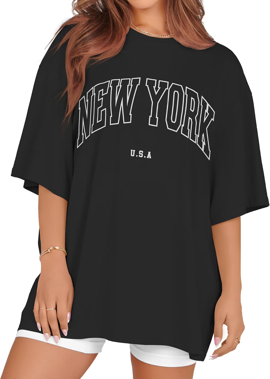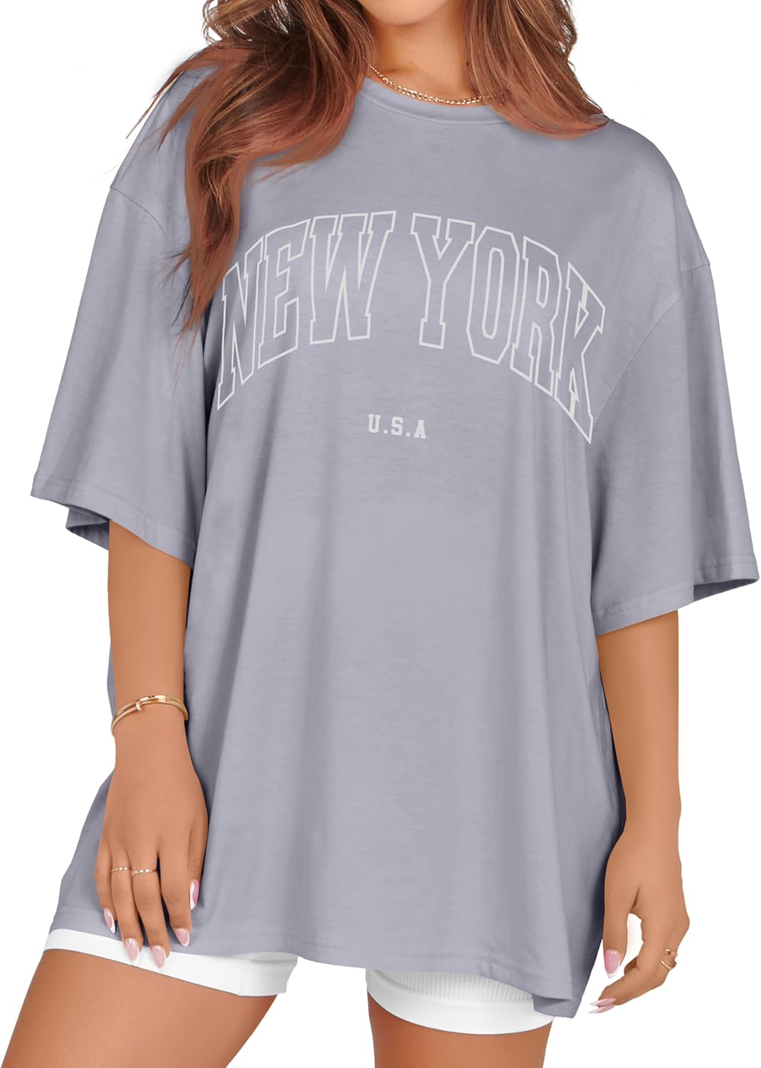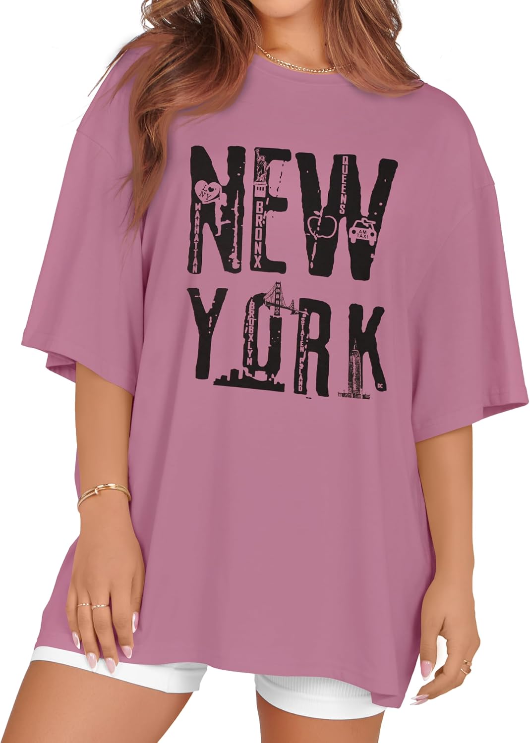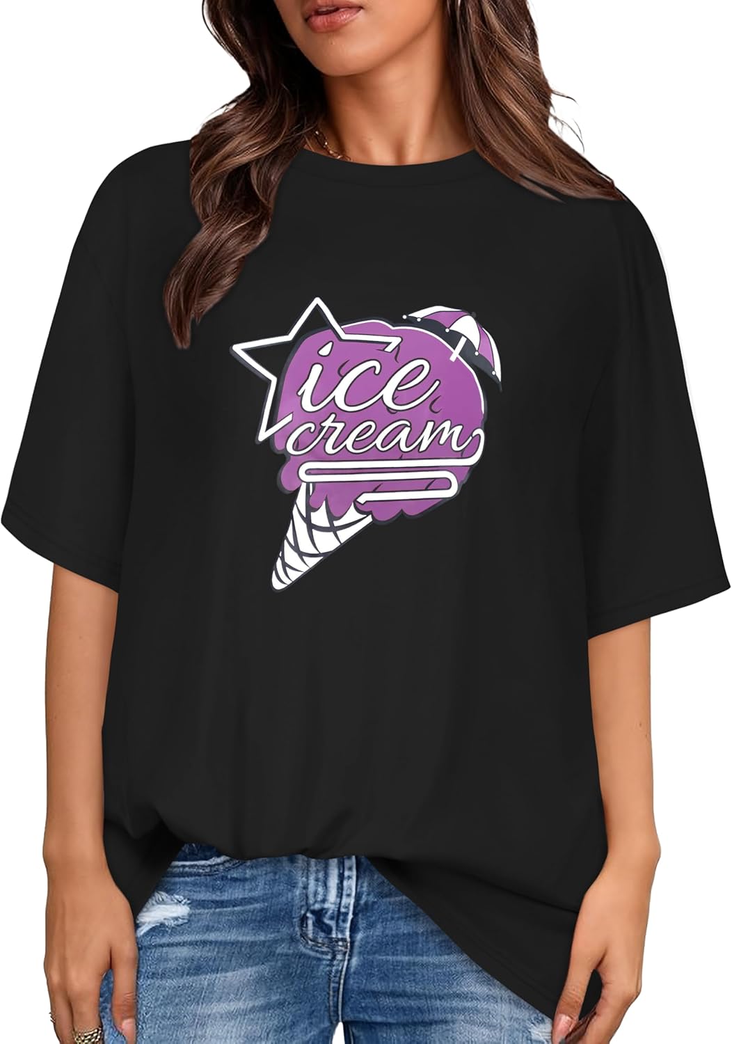 rosemia Oversized Tshirts for Women Summer Short Sleeve Round Neck Graphic Tee Shirt