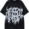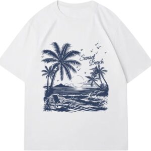 RoseSeek Men’s Graphic Letter Print Tees Crewneck Short Sleeve Baggy Drop Shoulder Vintage T Shirts Streetwear