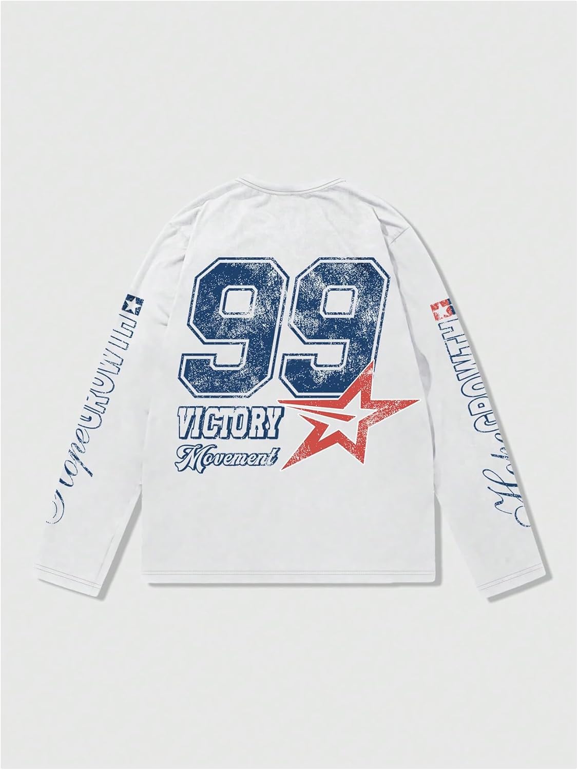 RoseSeek Men's Number Print Jersey Tops Graphic Tee Long Sleeve Crew Neck T-Shirt Streetwear quantity