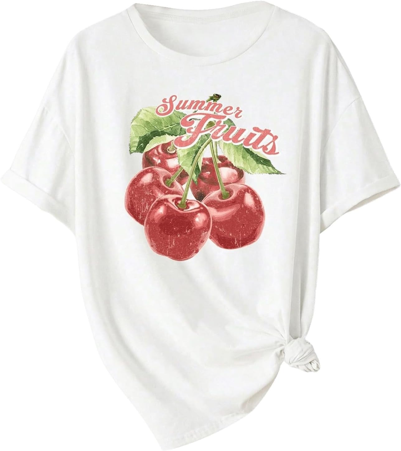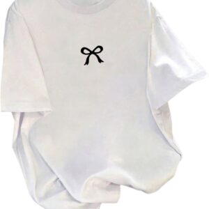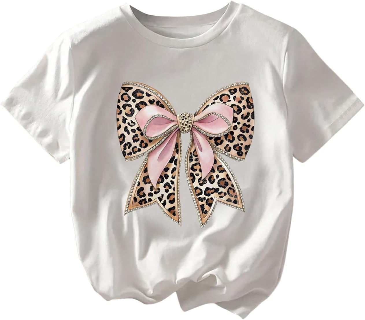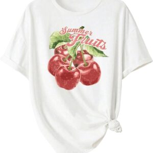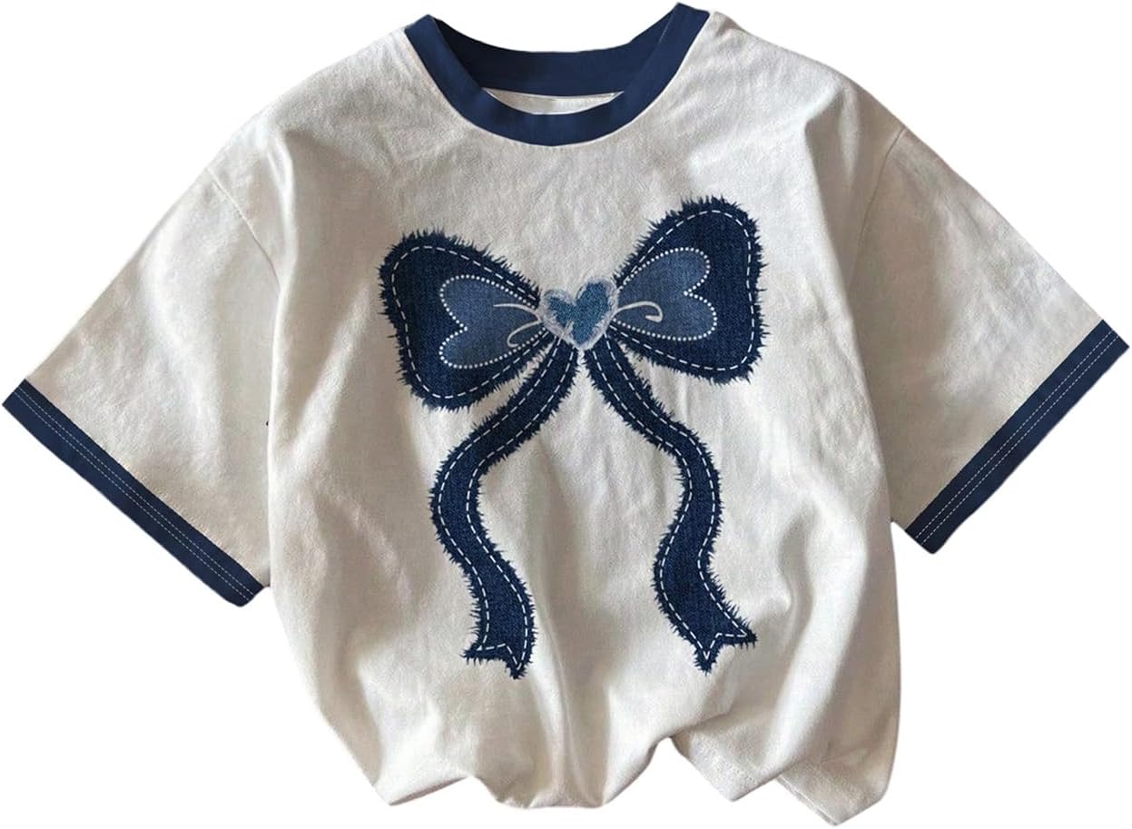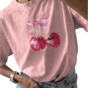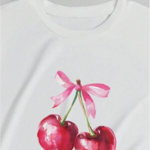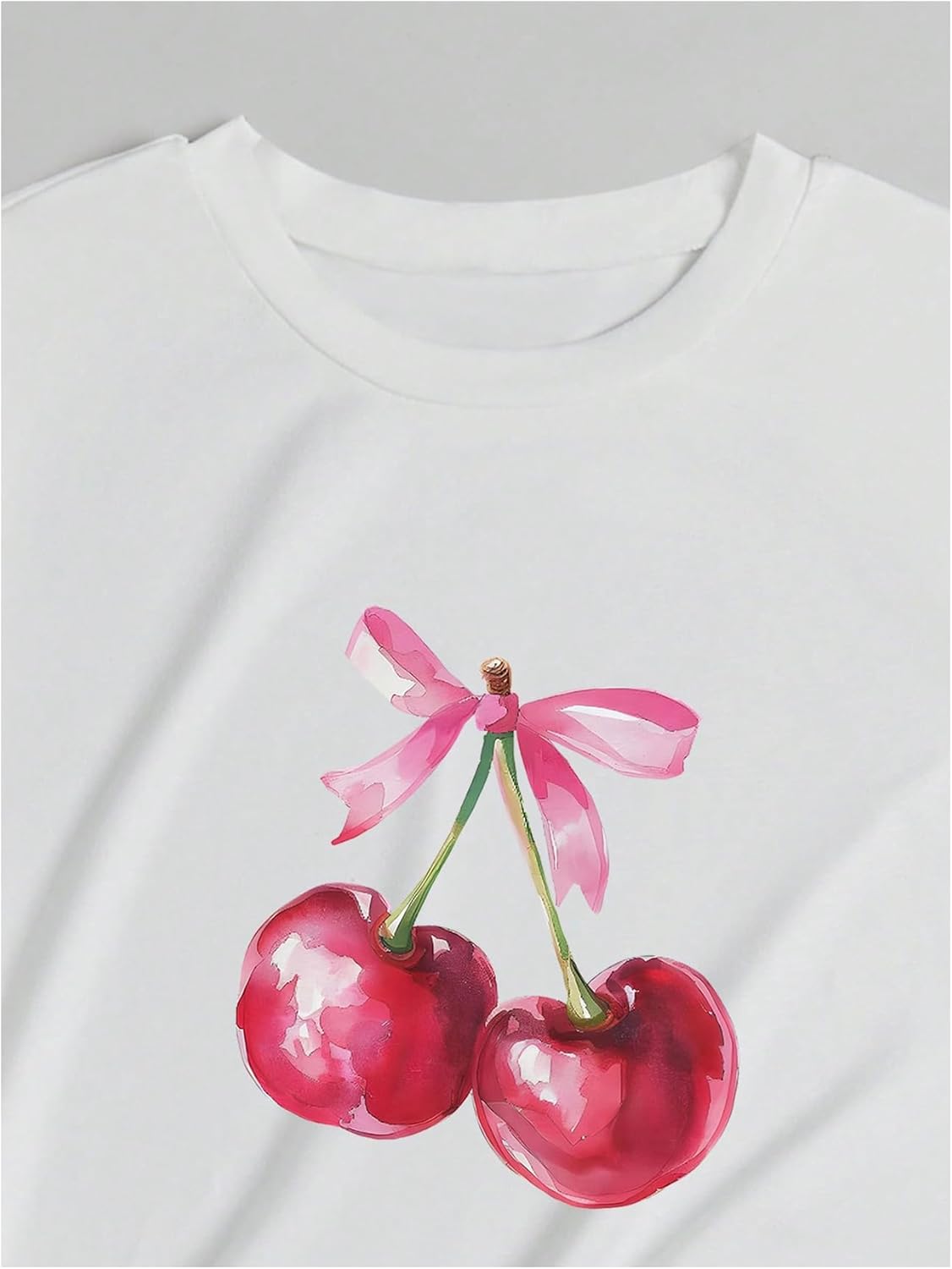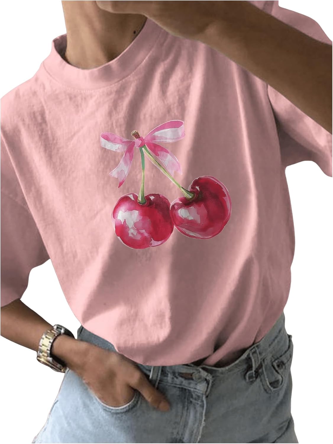 Cherry Bow Graphic Tee Shirts Short Sleeve Round Neck T Shirt Casual Summer Top