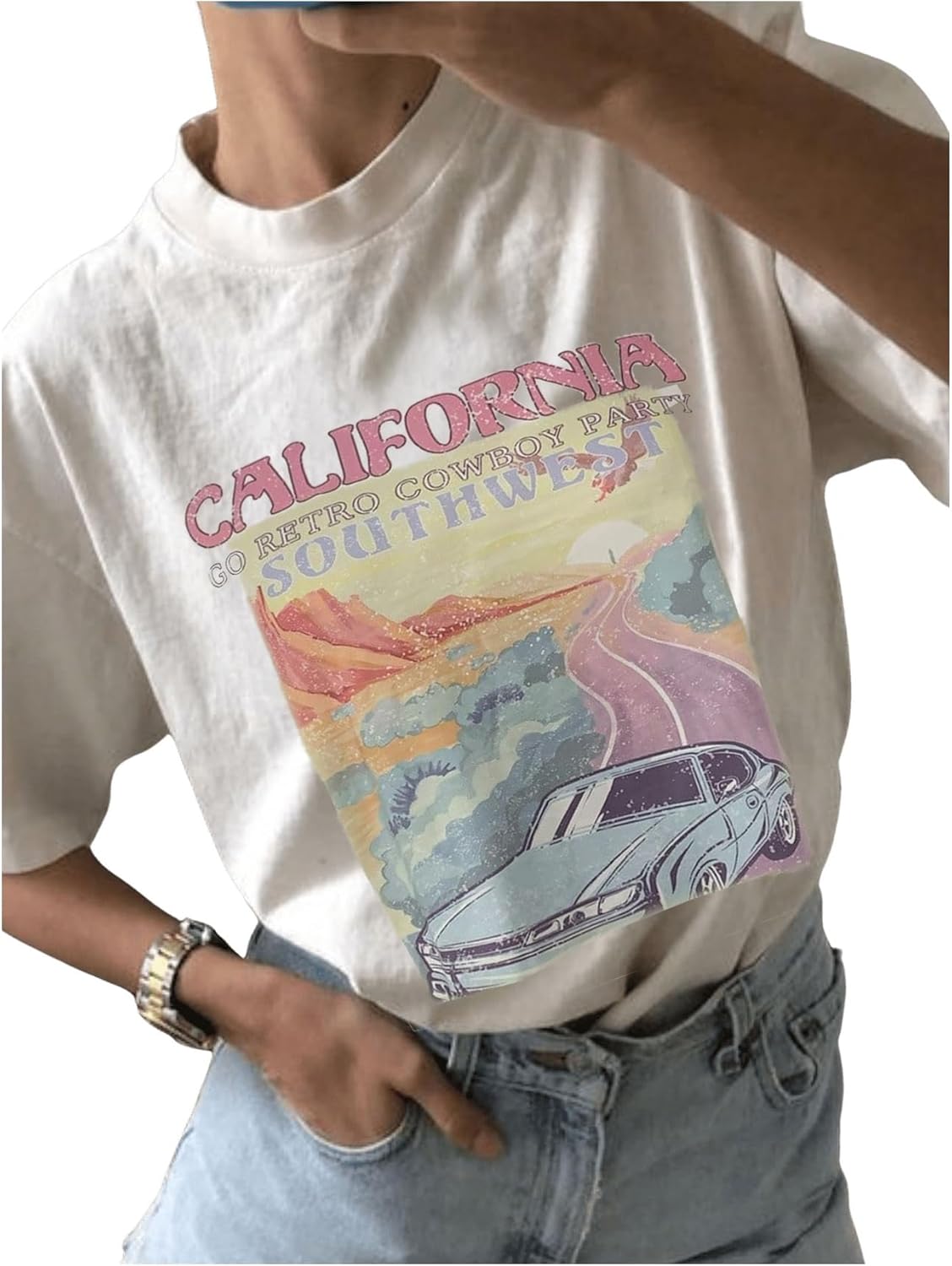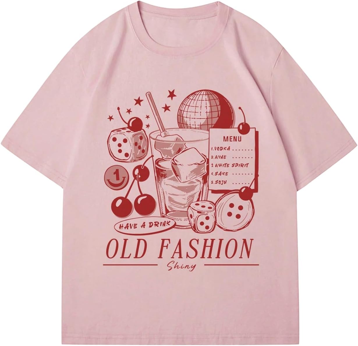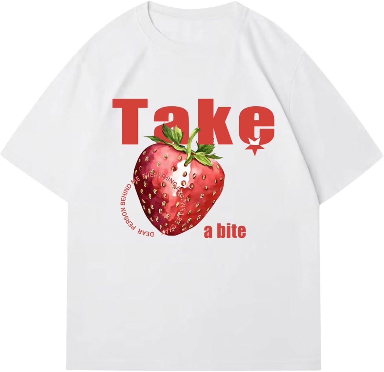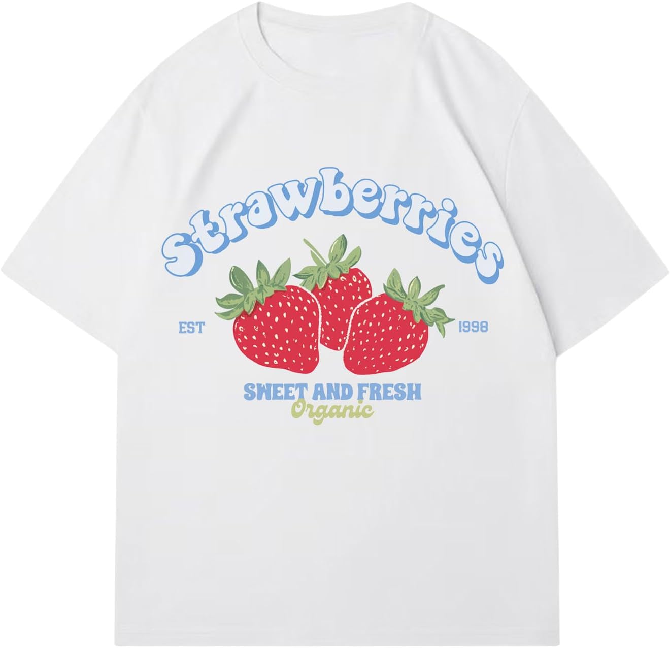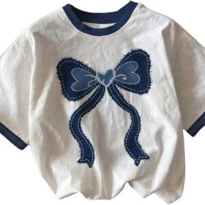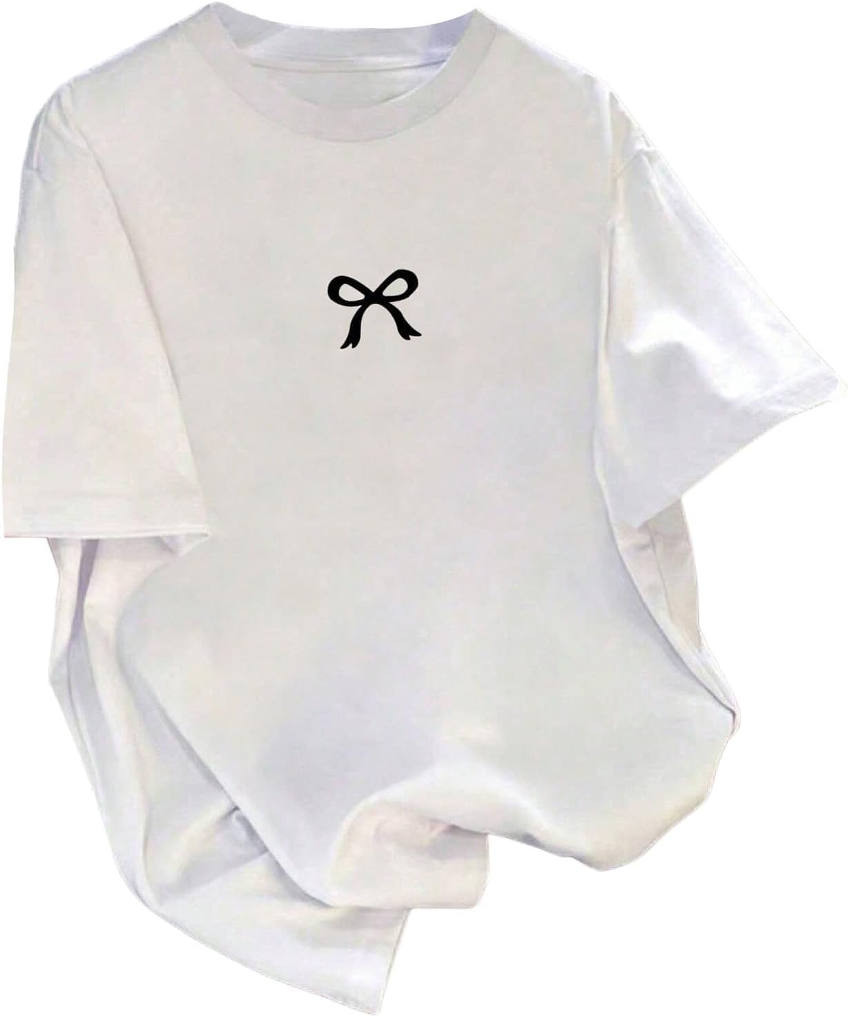 Cherry Bow Graphic Tee Shirts Short Sleeve Round Neck T Shirt Casual Summer Top