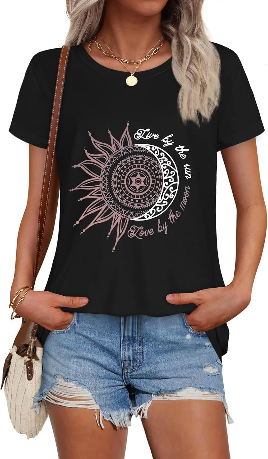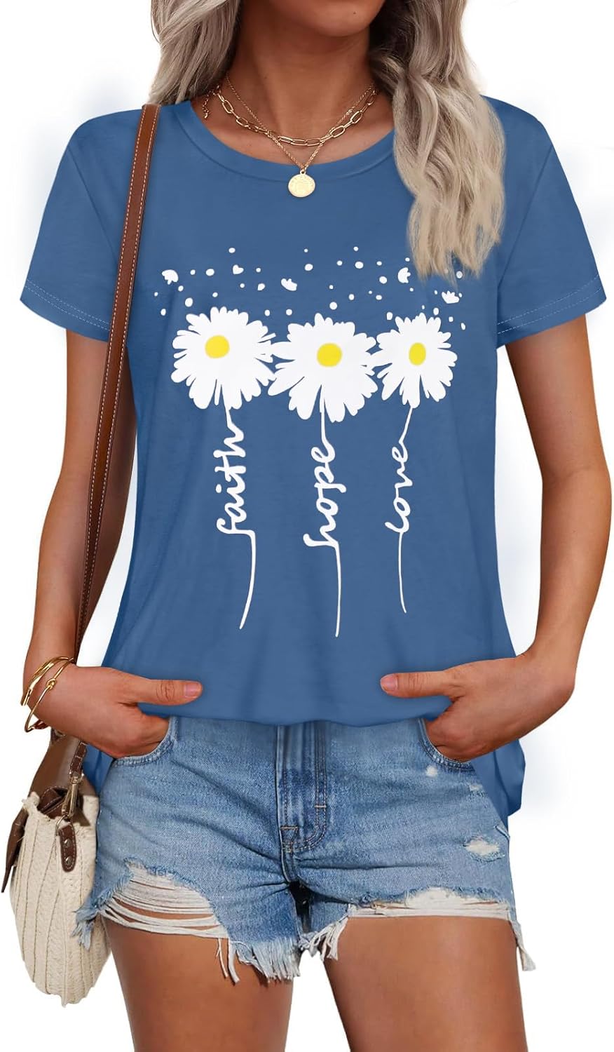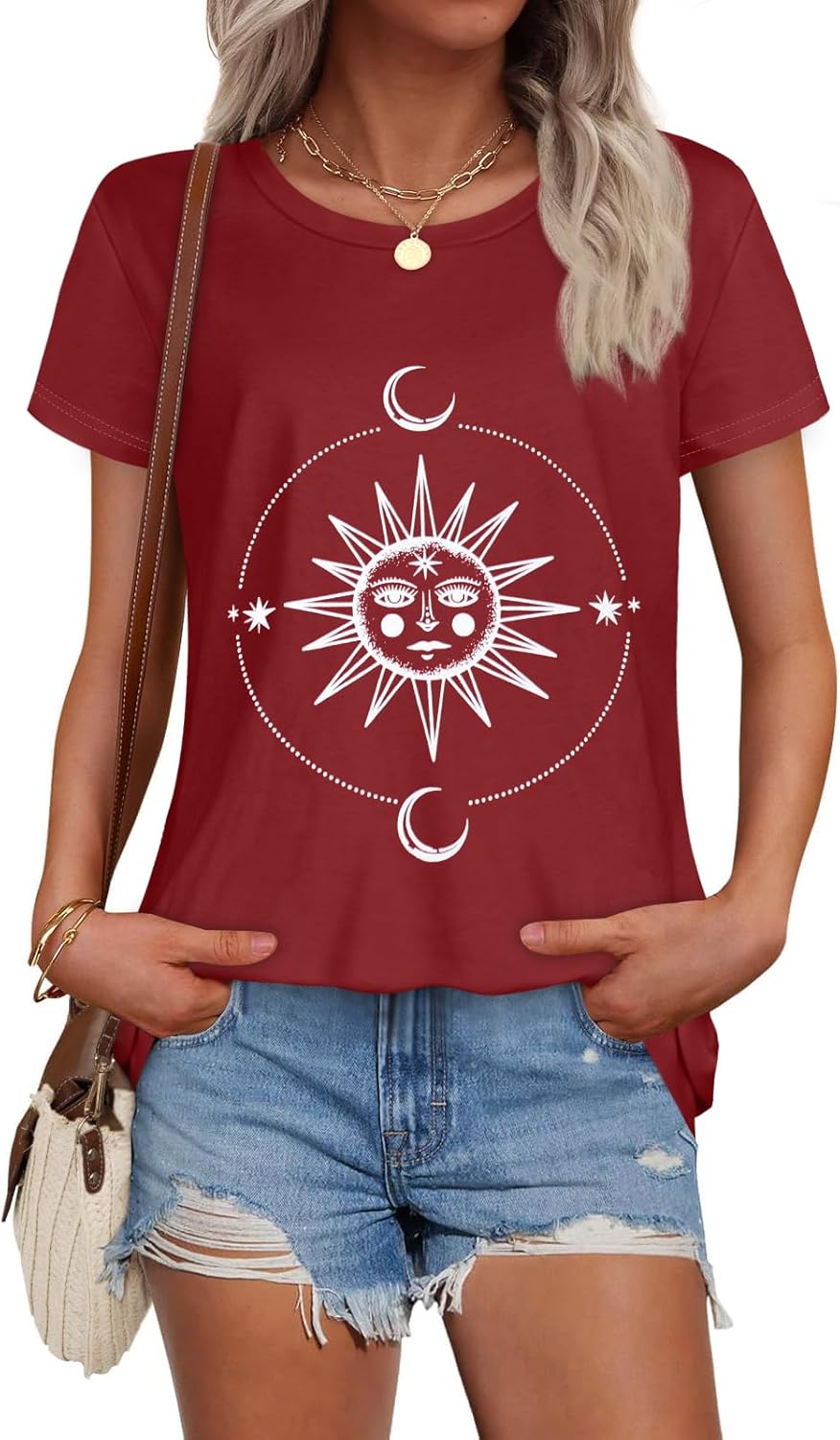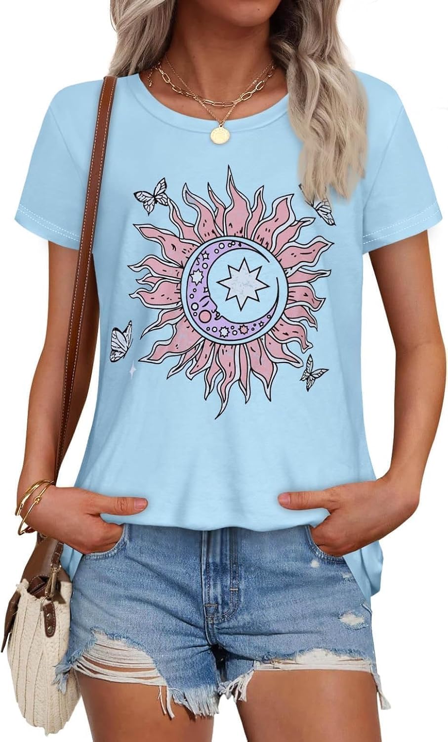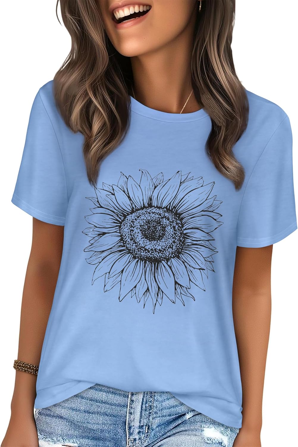 Crewneck Casual Womens Shirts Cute Graphic T Shirts Summer T Shirts for Women