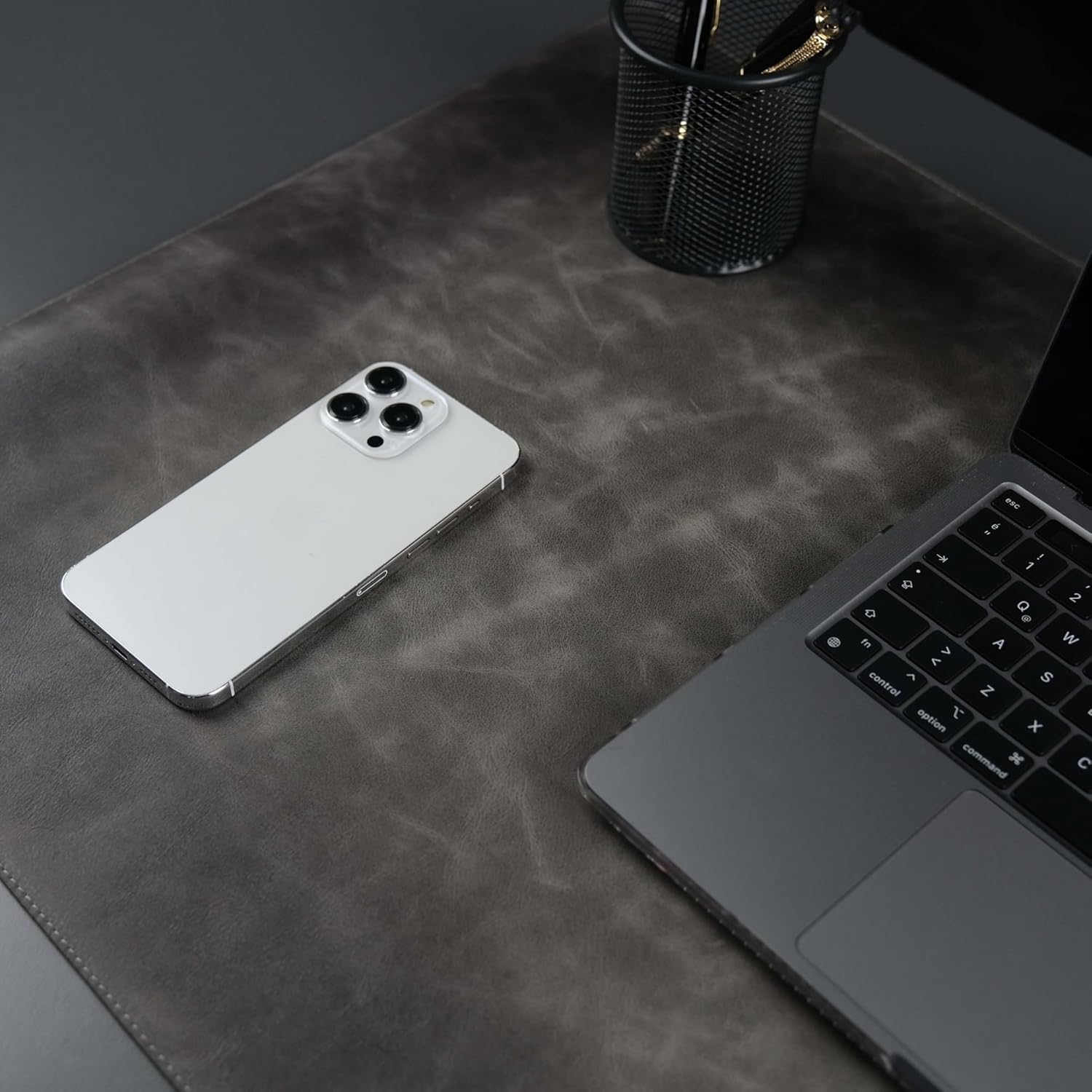 Transform your workspace with the refined style and functionality of the TORONATA Jersey leather desk pad. Meticulously handcrafted from genuine calfskin leather, this desk mat brings an elegant touch to any office environment. The Jersey model provides exceptional desk protection against scratches, spills, and daily wear, while its smooth surface creates an ideal writing area and allows for precise mouse movements, enhancing your productivity. Available in a versatile size of 36×19 inches, this desk pad suits various workspace configurations. The non-slip bottom ensures stability during use, keeping the pad securely in place throughout your workday. Seamlessly integrating into executive offices, home workspaces, and gaming setups, the Jersey leather desk pad adds a sophisticated touch while serving an essential practical purpose. Designed for practicality, this leather desk pad maintains its beauty with minimal care, making it a long-lasting addition to your workspace.