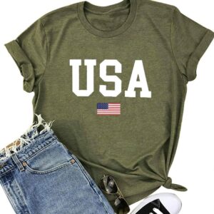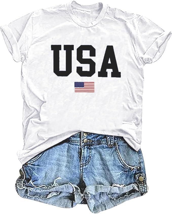 USA Flag Tee Shirt for Women 4th of July Memorial Day Gift T Shirt Casual Short Sleeve American Proud T-Shirt Tops