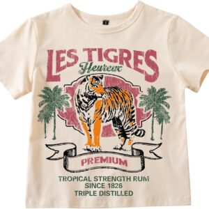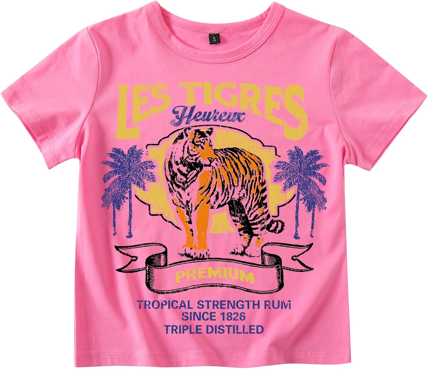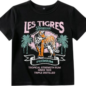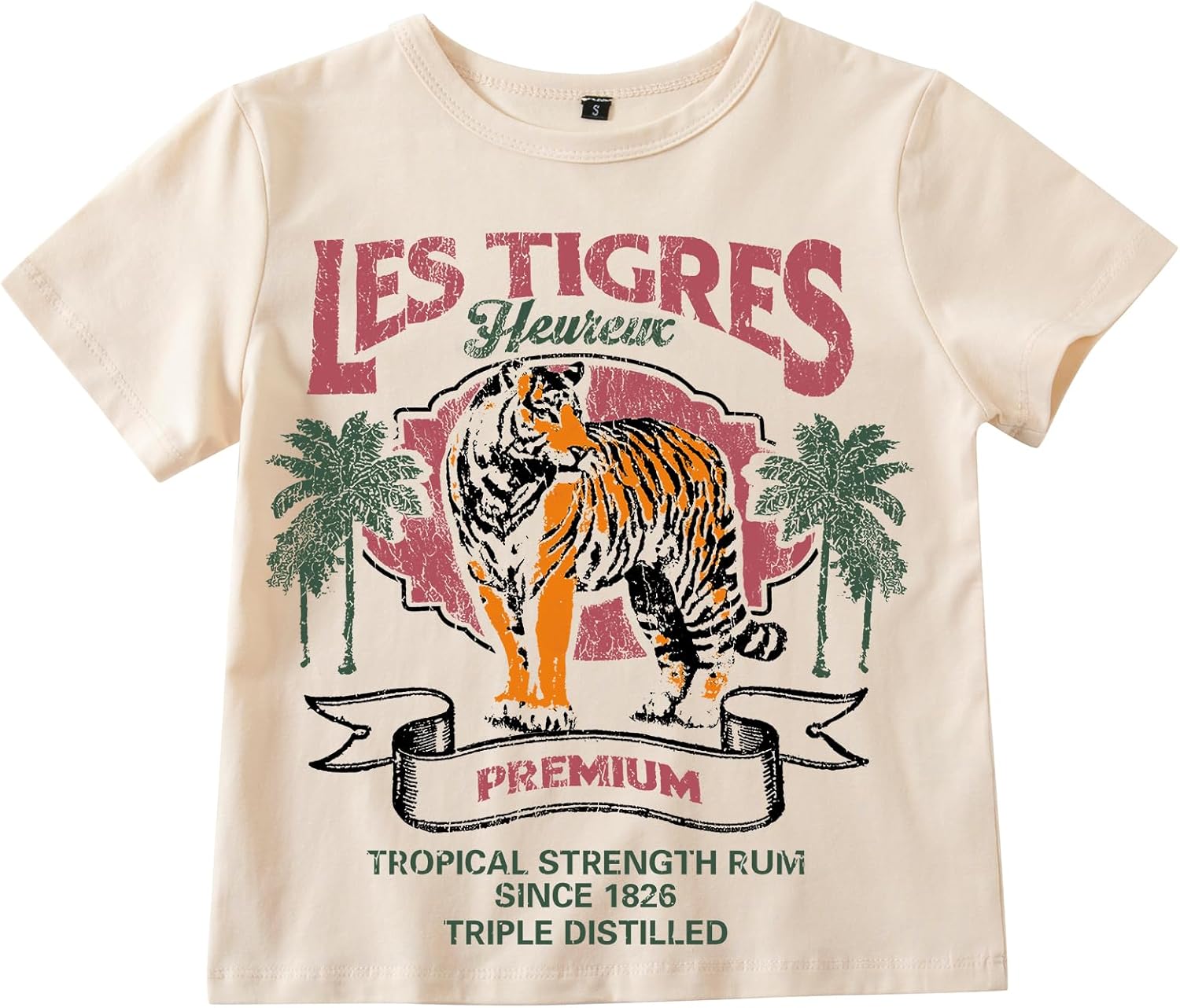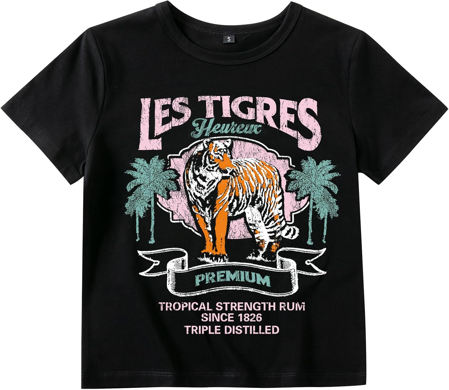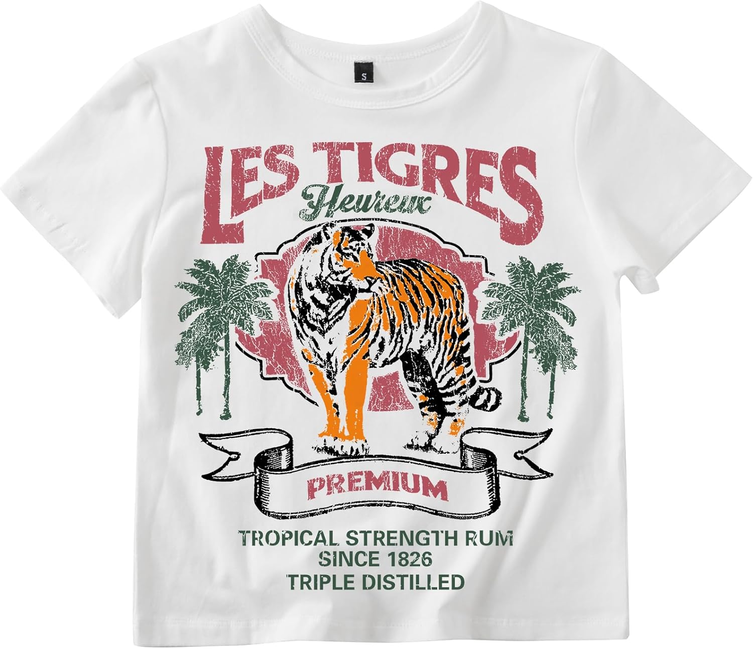 veufcyas Cute Tiger Graphic Baby Tees for Women Y2k Preppy Summer Cropped Shirts Aesthetic Crop Tops Teen Girl Trendy Clothes