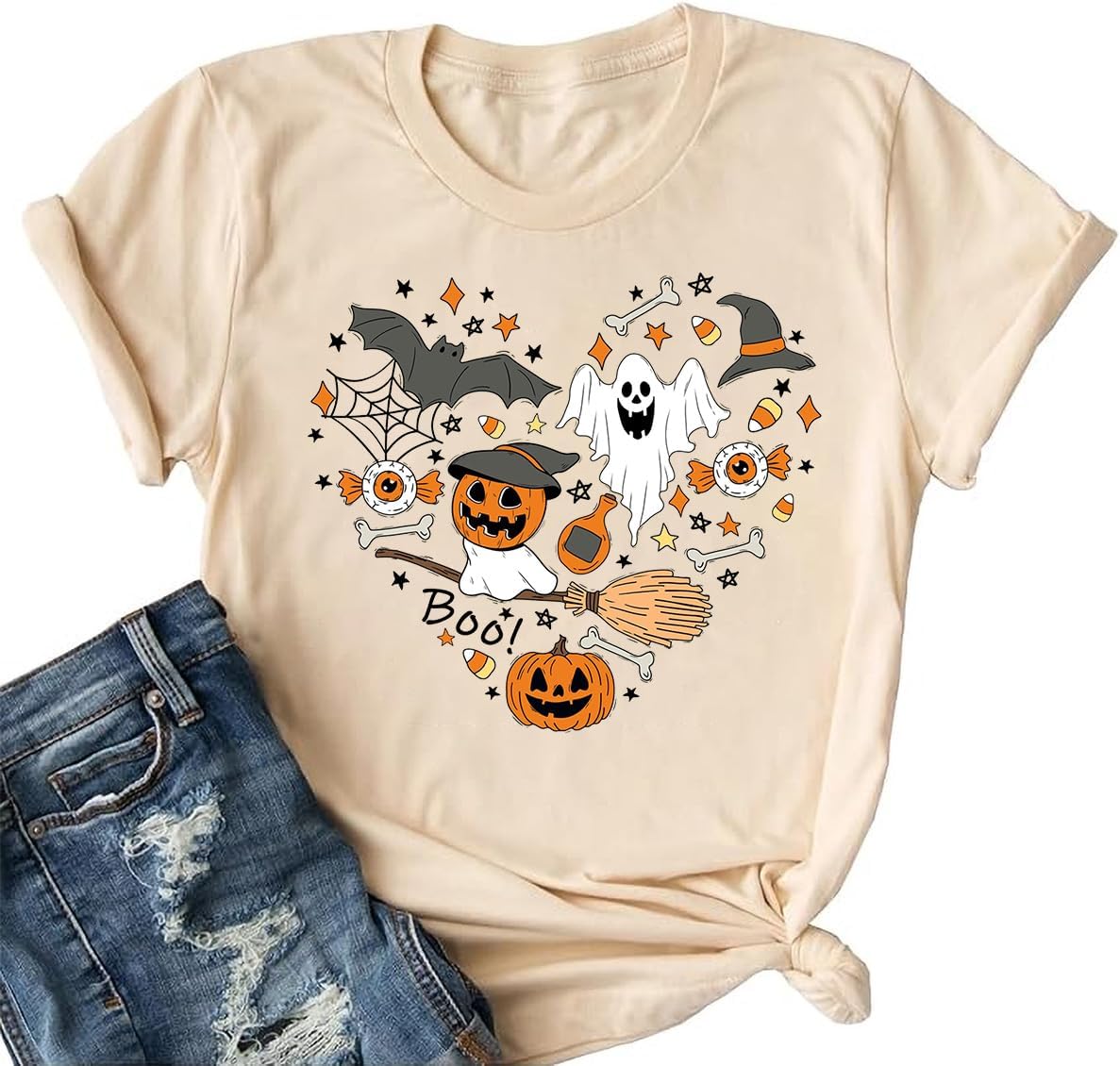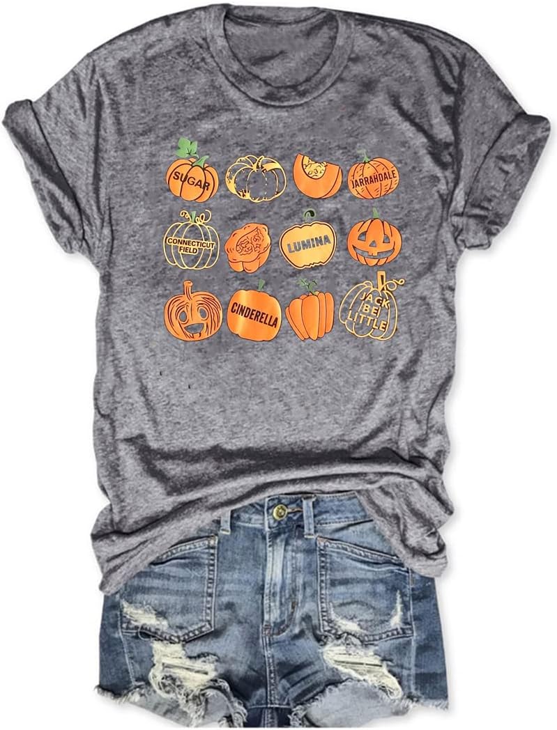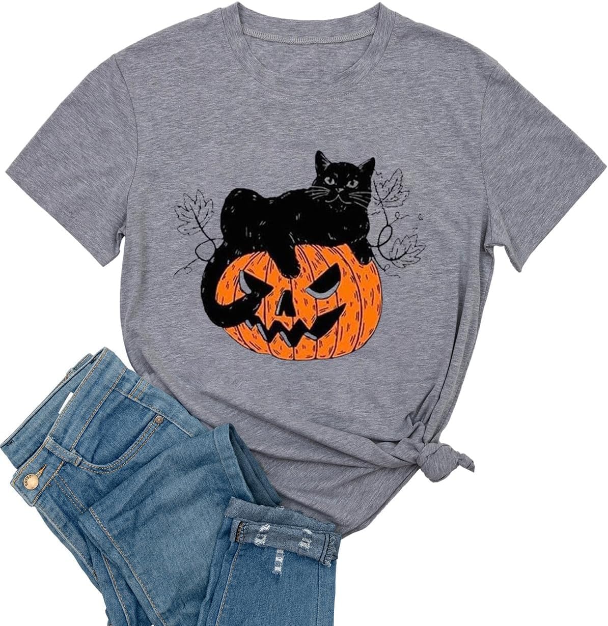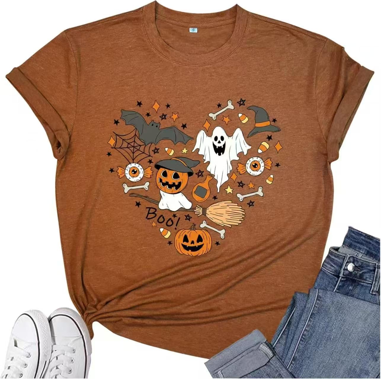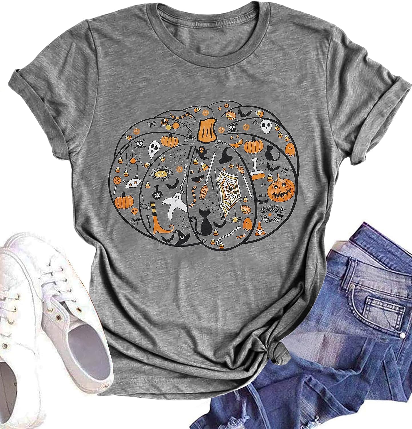 - Feature: Halloween Pumpkin Print,Short Sleeve,O-neck,Casual,Funny T-shirt