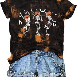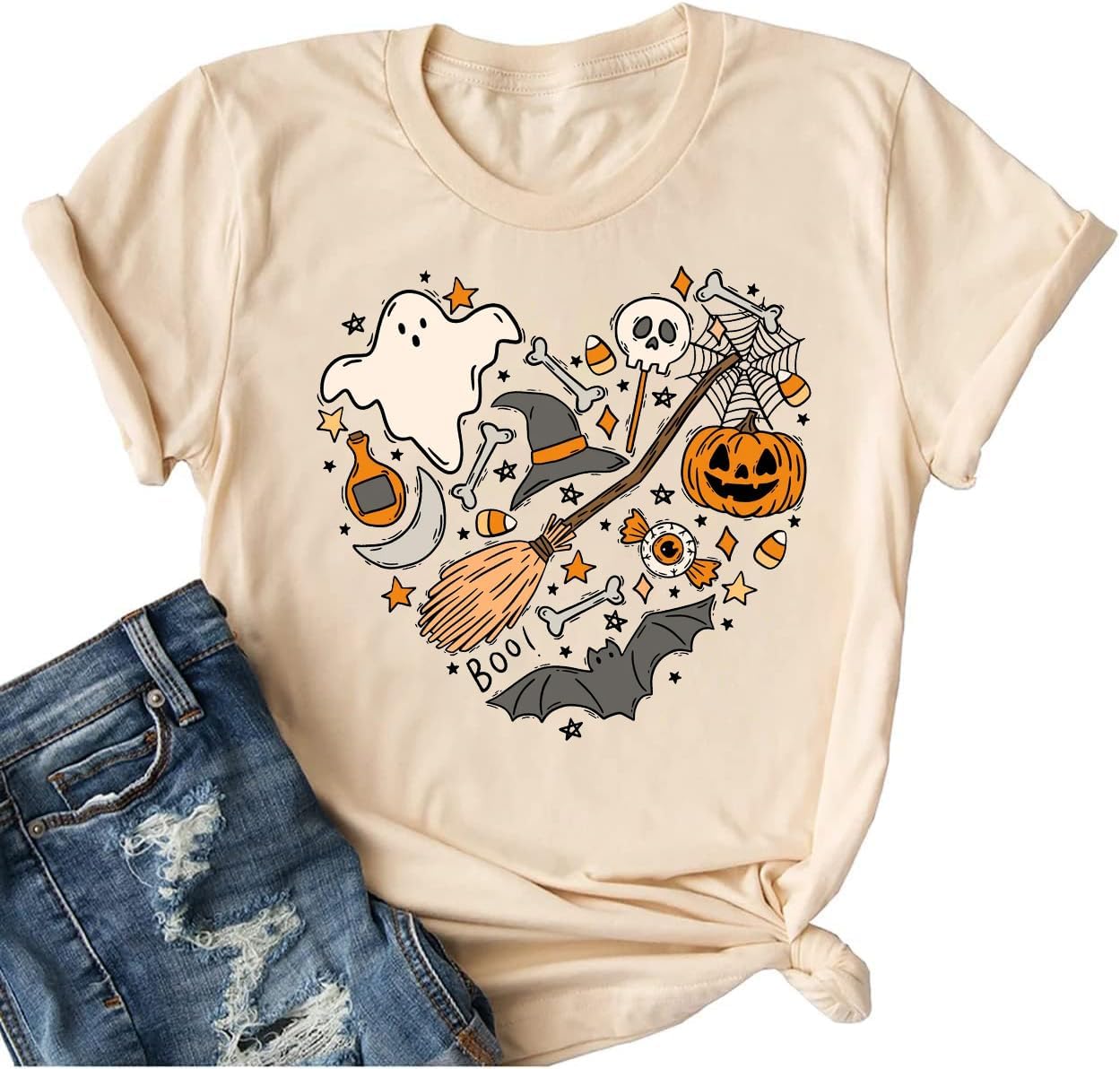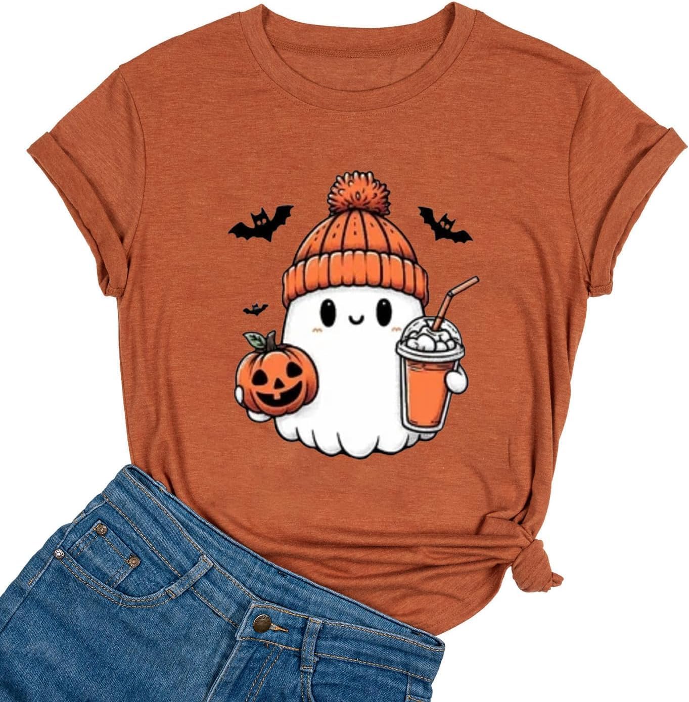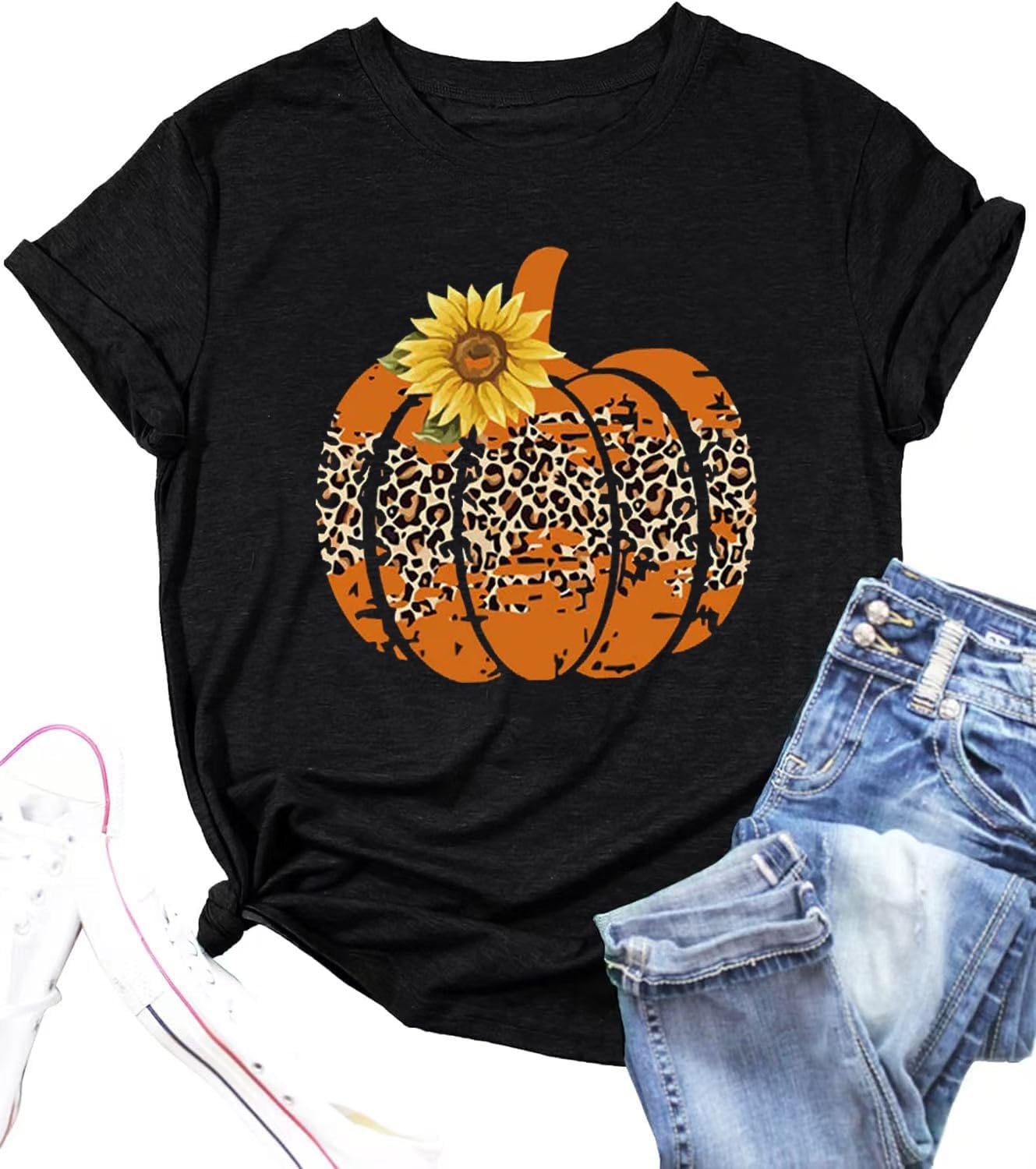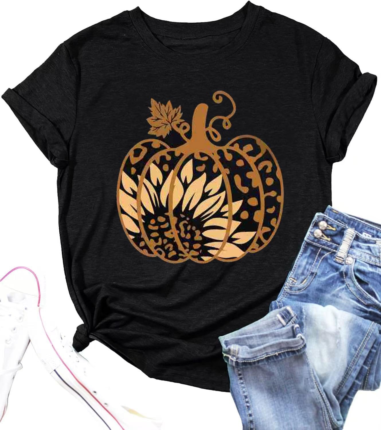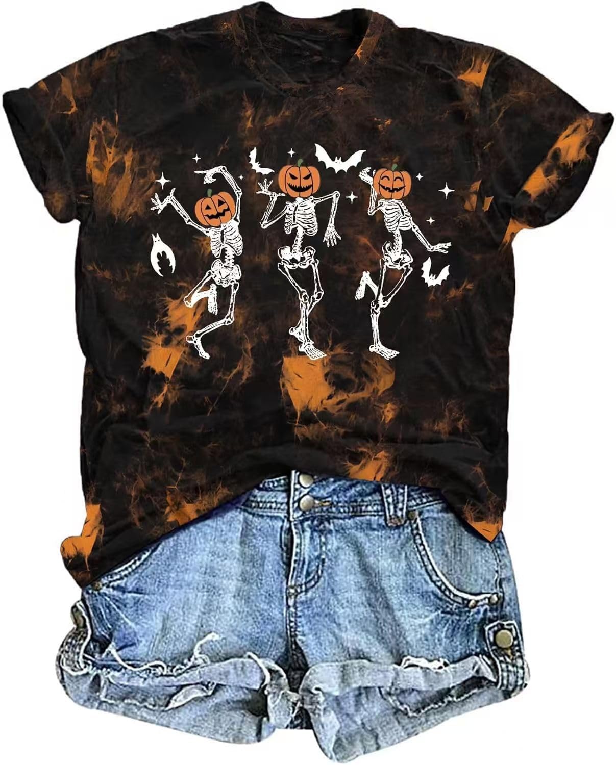 - Feature: Halloween Pumpkin Print,Short Sleeve,O-neck,Casual,Funny T-shirt