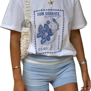 Women Cute Graphic Oversized Tees Fish Lobster Printed Y2K Baggy T Shirts Teen Girls Preppy Vintage Aesthetic Summer Tops