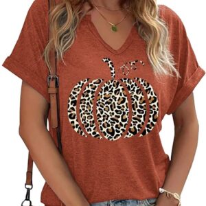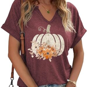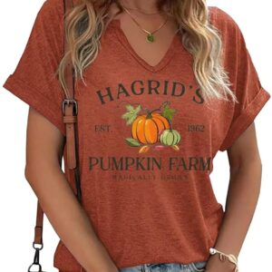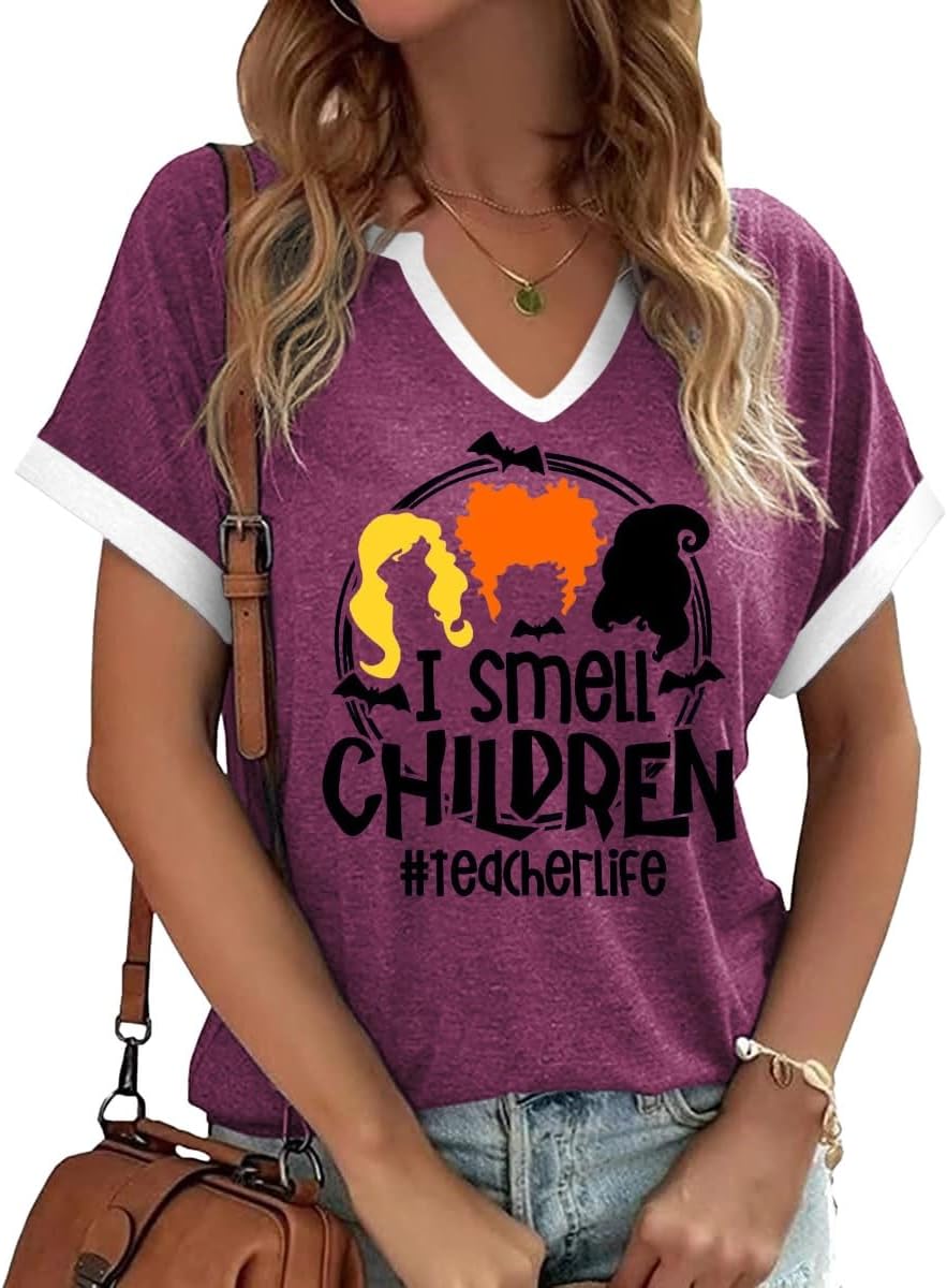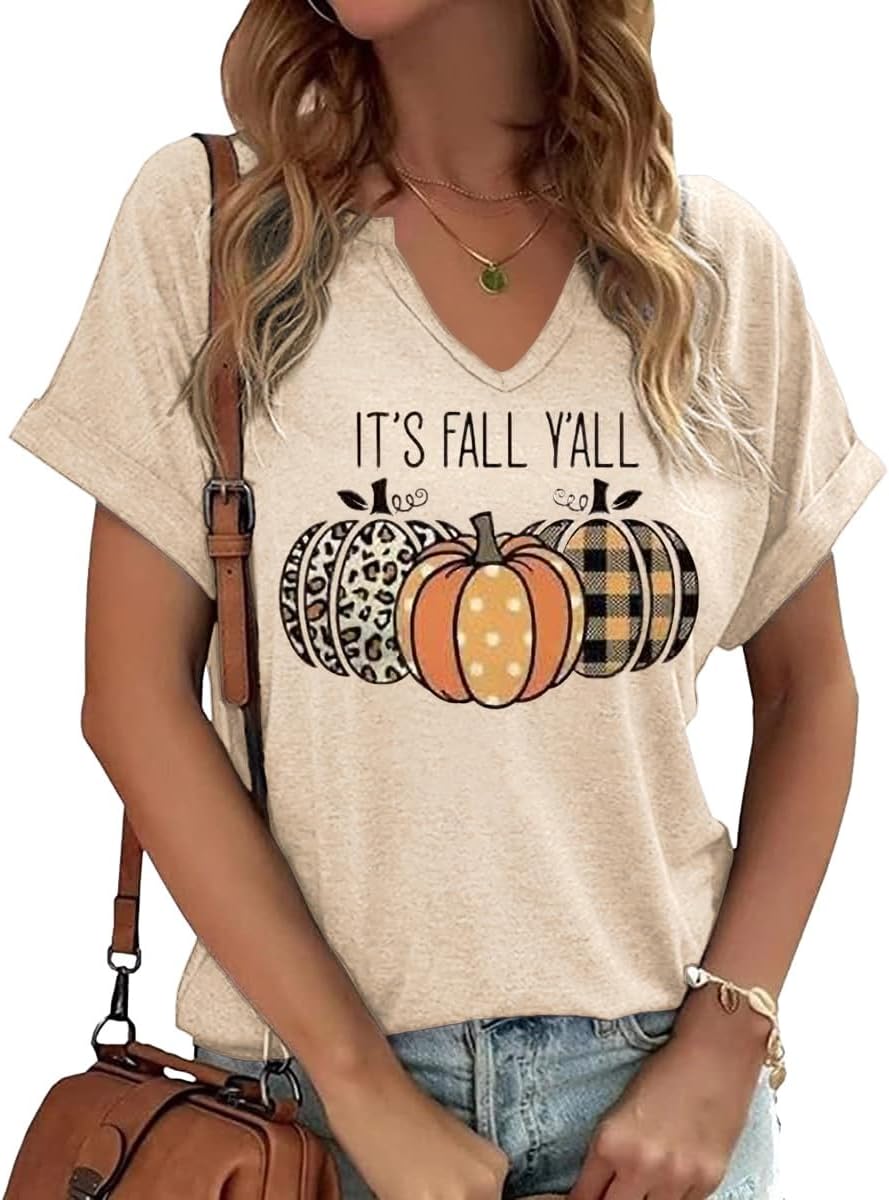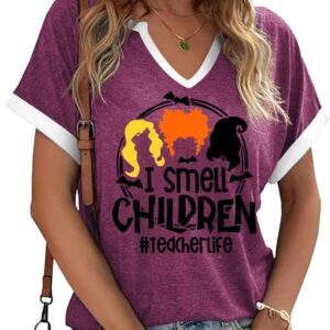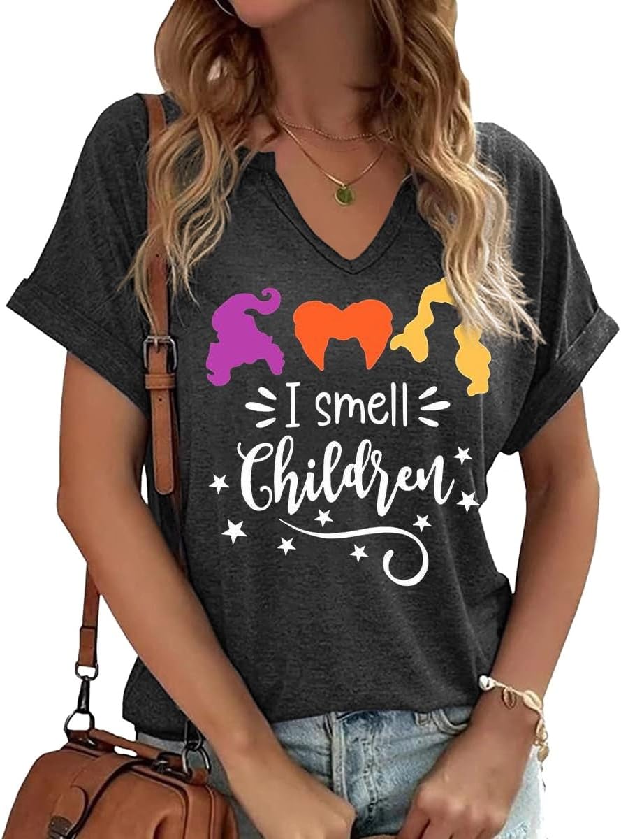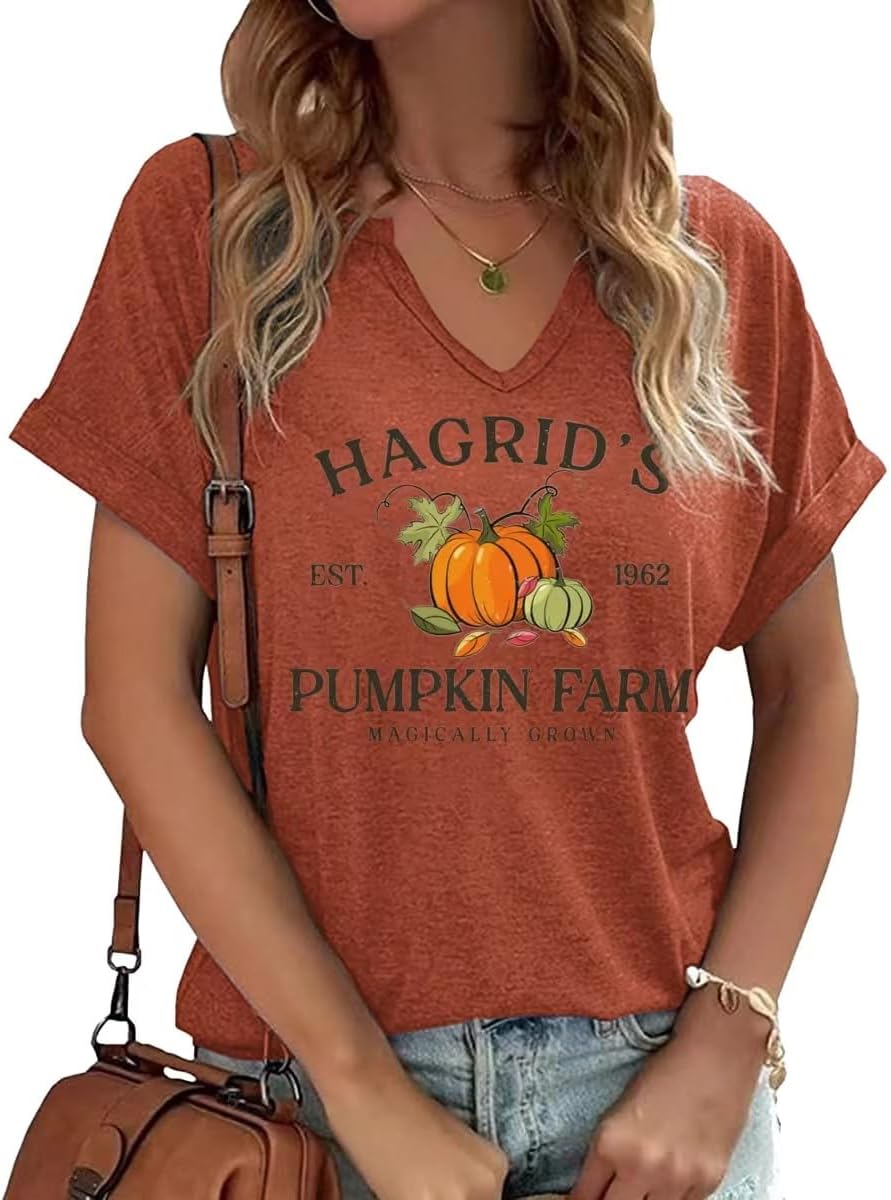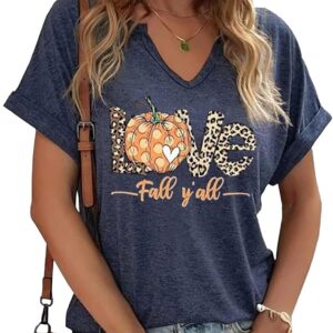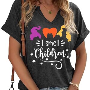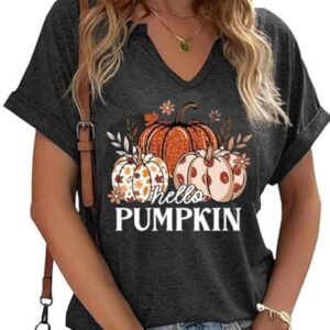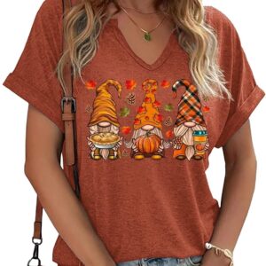 Women Fall Halloween Doodles V Neck Shirt Funny Family Party Celebration Short Sleeve Tee