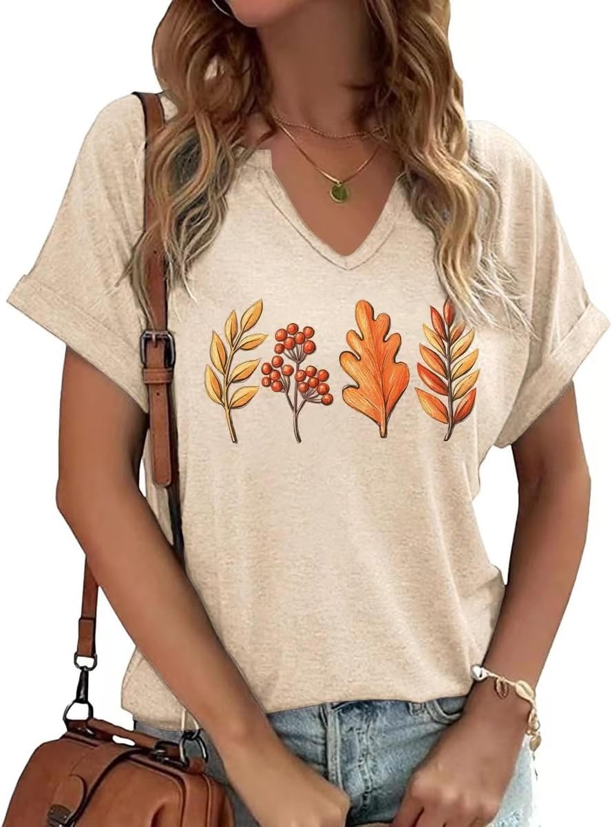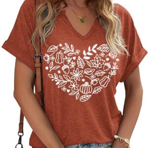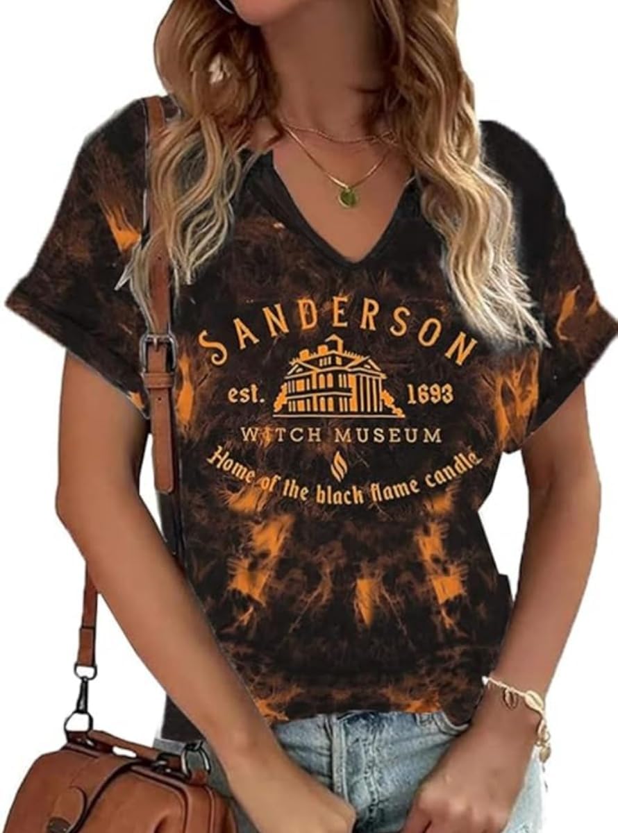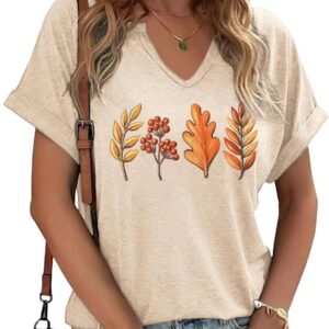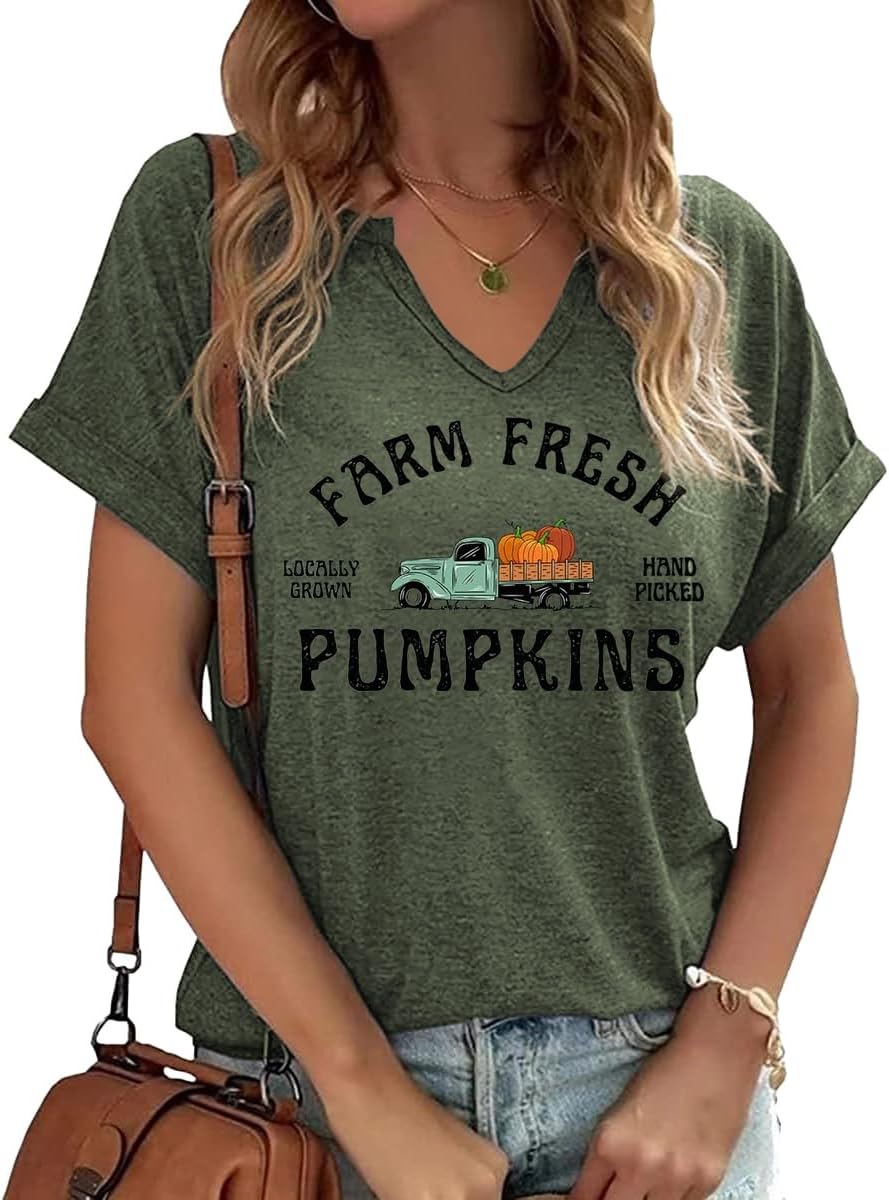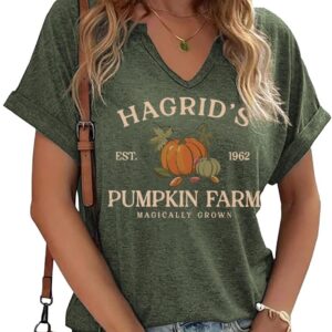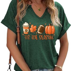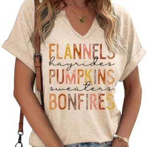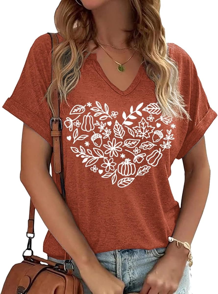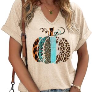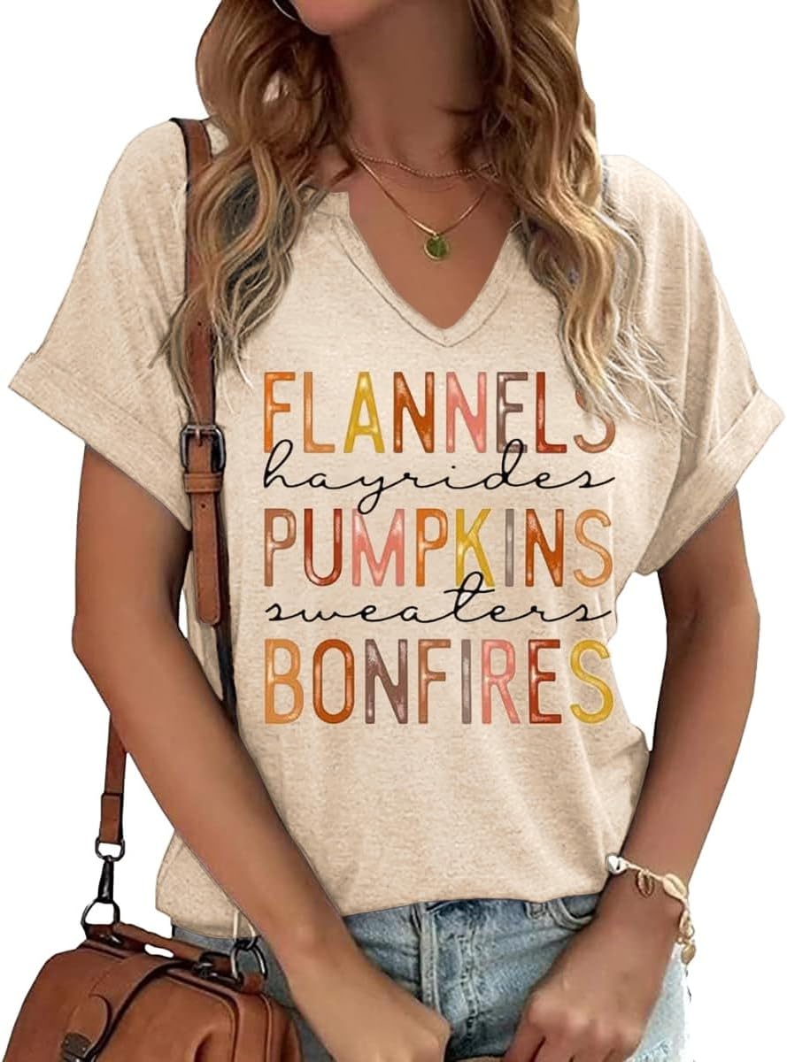 Women Fall Halloween Doodles V Neck Shirt Funny Family Party Celebration Short Sleeve Tee