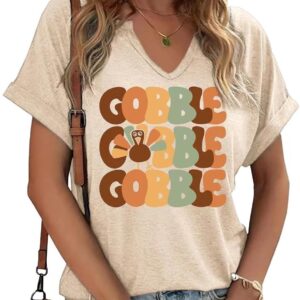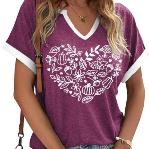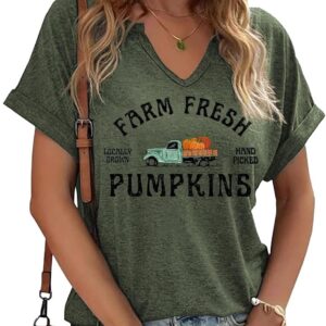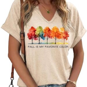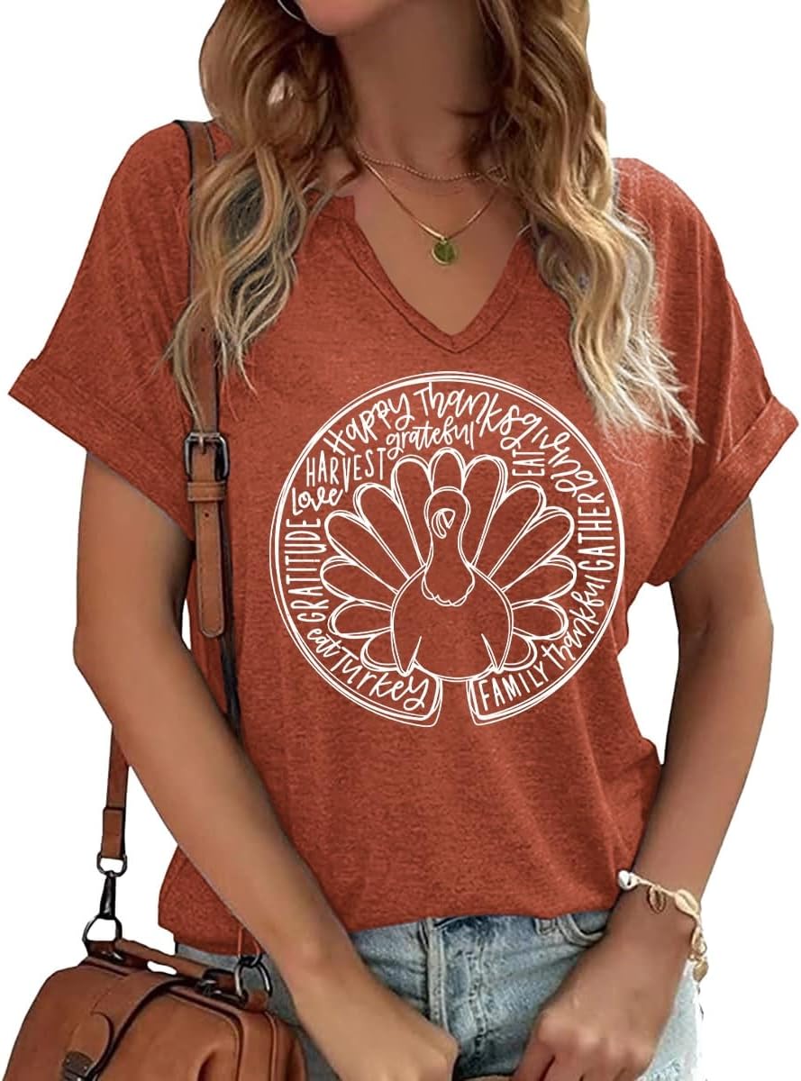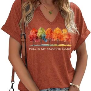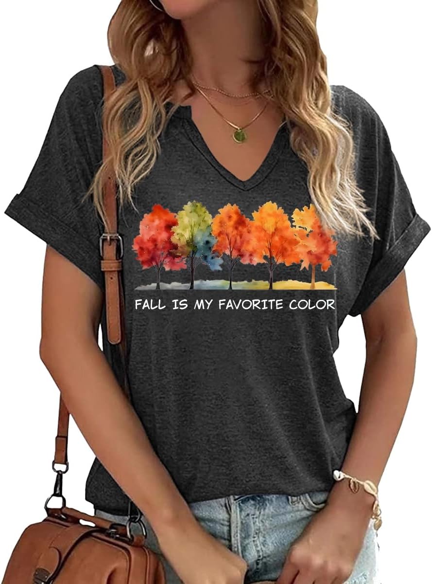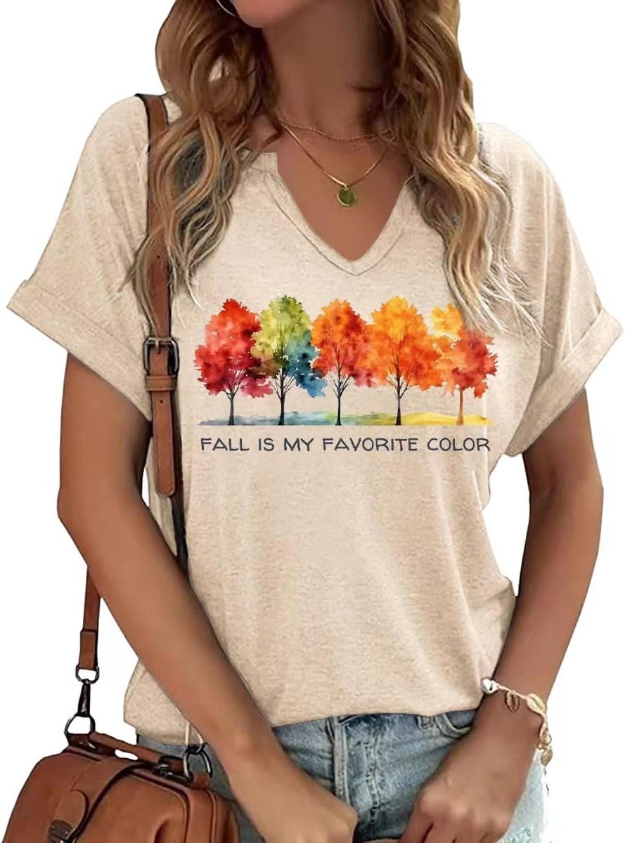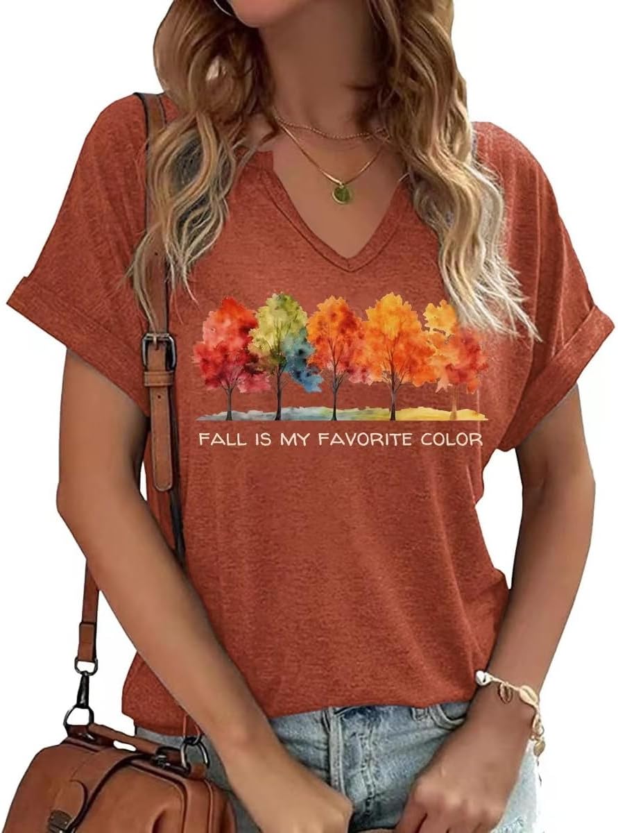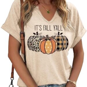 Women Fall Halloween Doodles V Neck Shirt Funny Family Party Celebration Short Sleeve Tee
