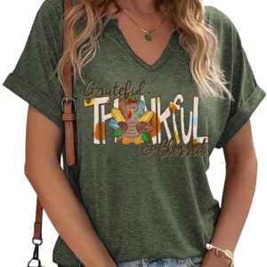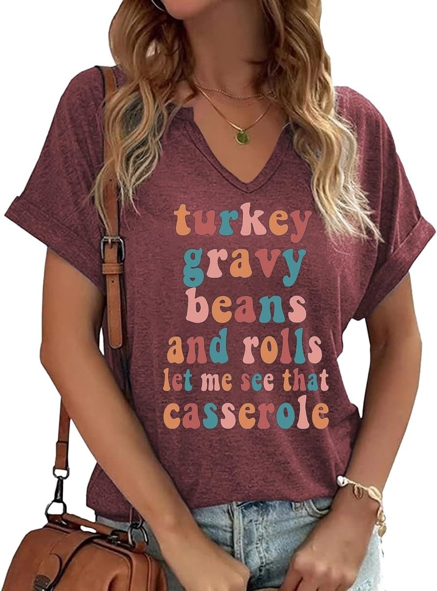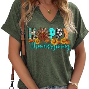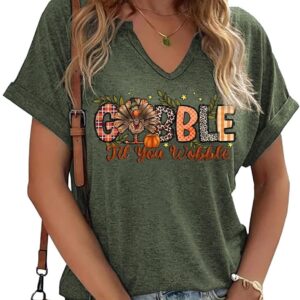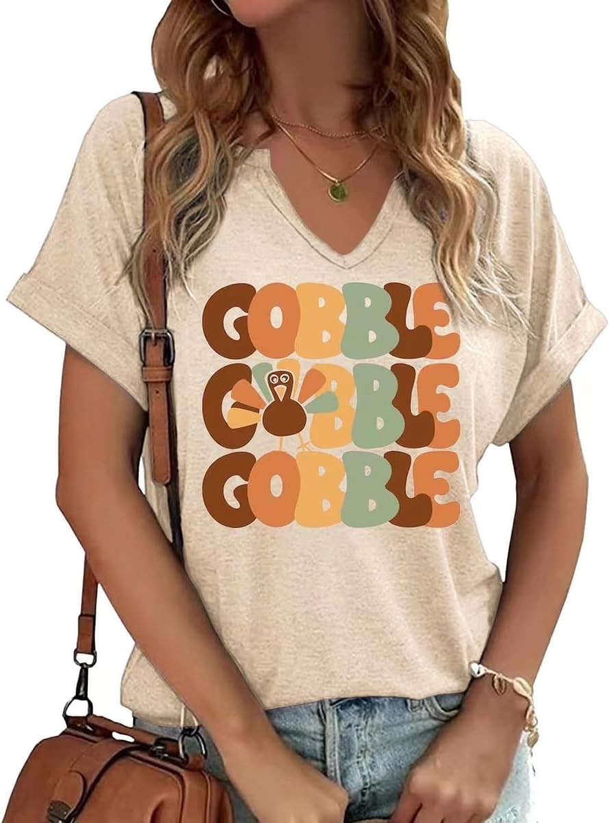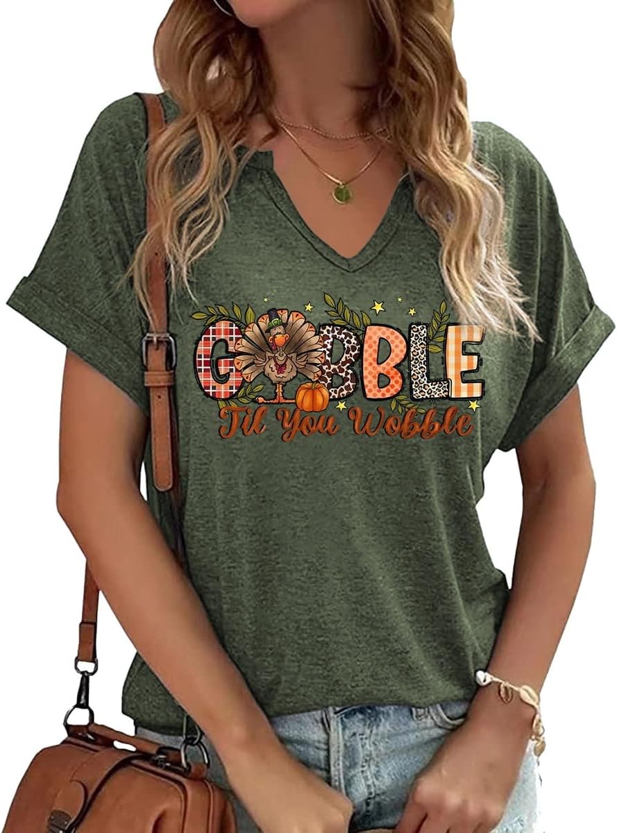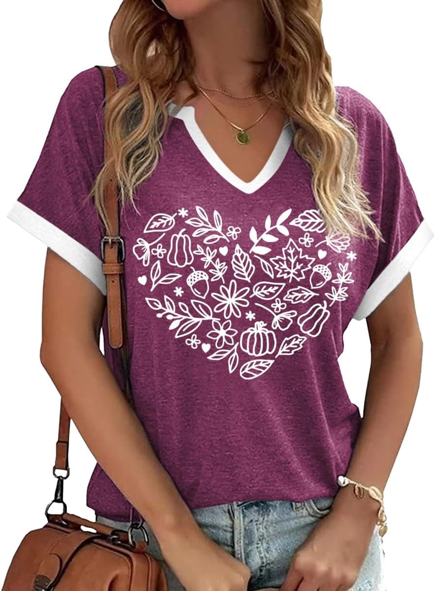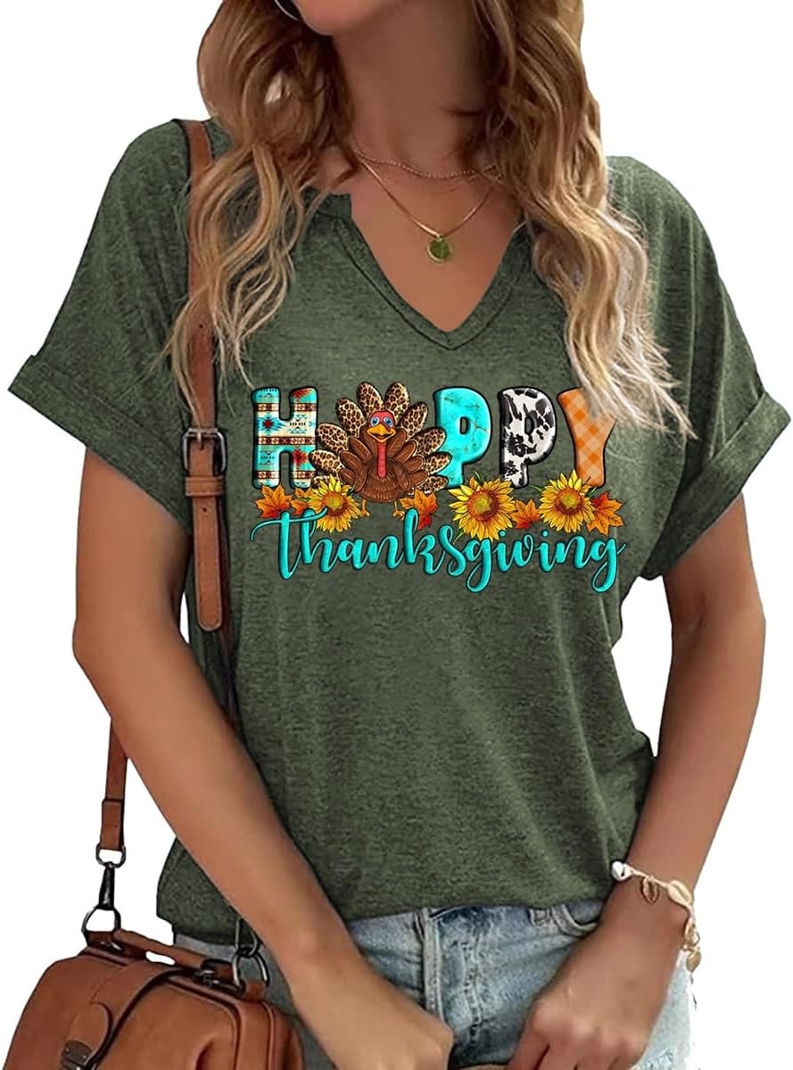 Women Fall Halloween Doodles V Neck Shirt Funny Family Party Celebration Short Sleeve Tee