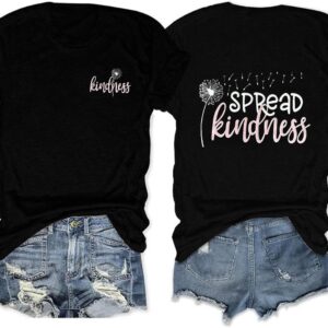 Spread Kindness T Shirt for Women Summer Dandelion Graphic Tees Casual Funny Sayings Letter Printed Cute Shirts Tops