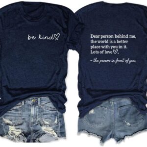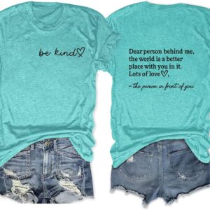 Dear Person Behind Me Shirt Be Kind Women T-Shirt The World is A Better Place with You Print Shirts Jesus Loves You T shirt