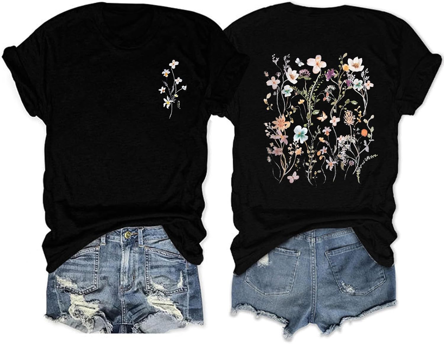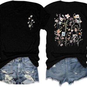 Vintage Floral Graphic Tees Casual Funny Wildflowers Printed Cute Shirts