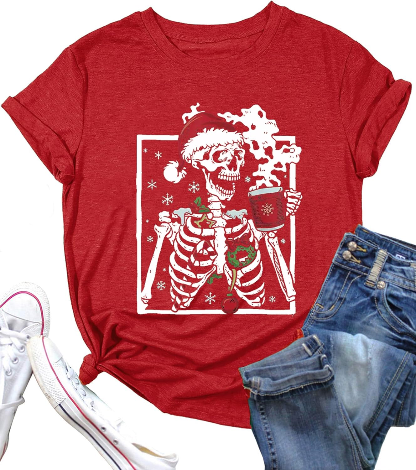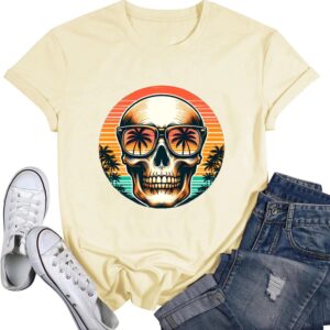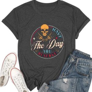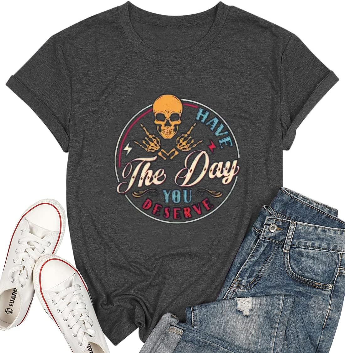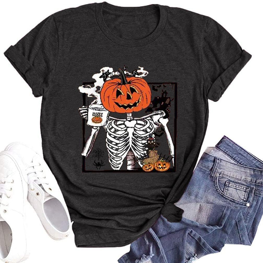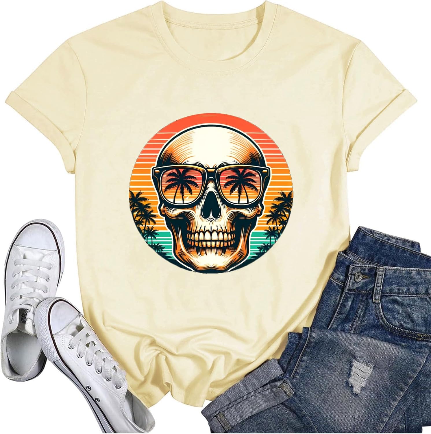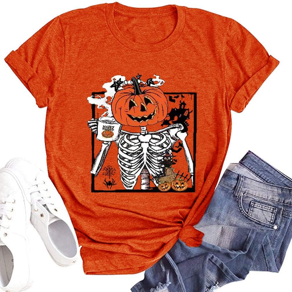- Skull graphic shirt for women , novelty horror graphic pattern shirt , women's cute Hocus Pocus skull shirt, vintage friends horror shirt, casual loose autumn shirt, funny costume shirt, fashion classic round neck short sleeve shirt