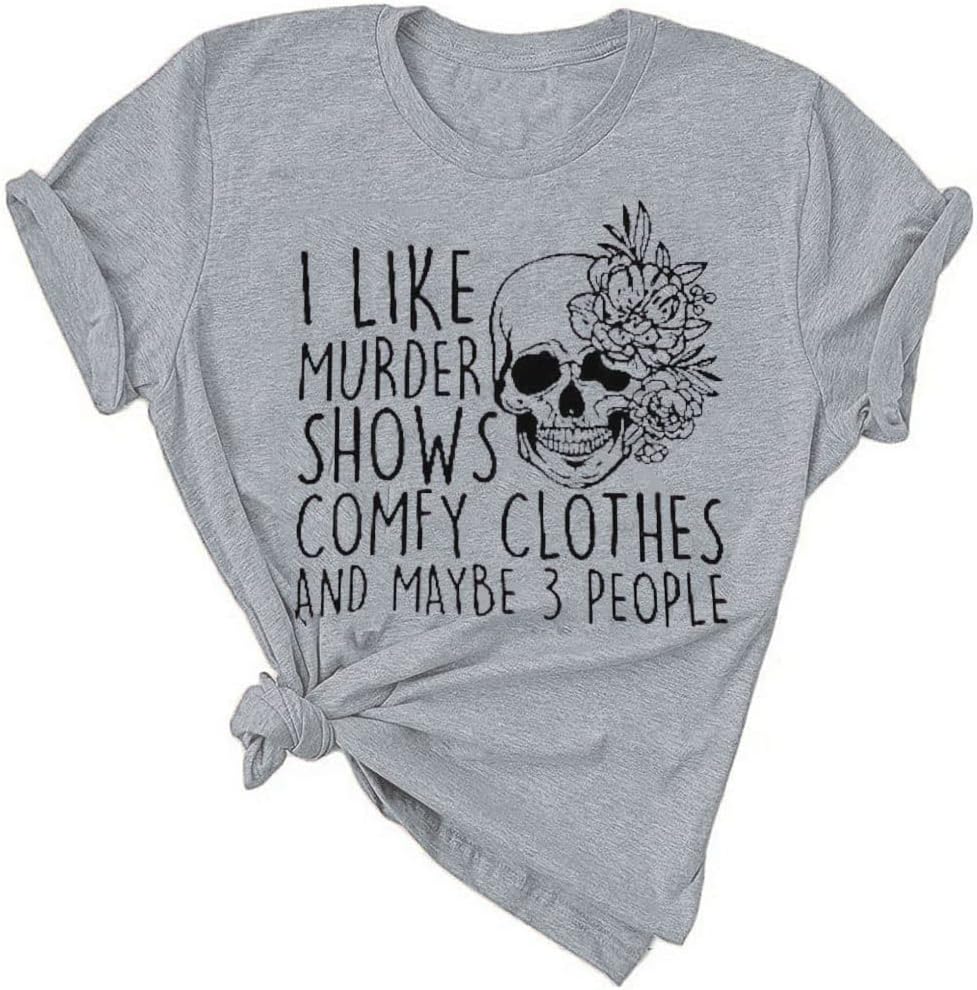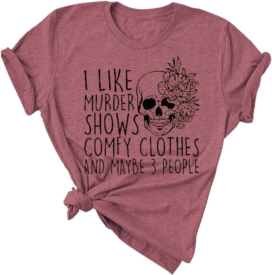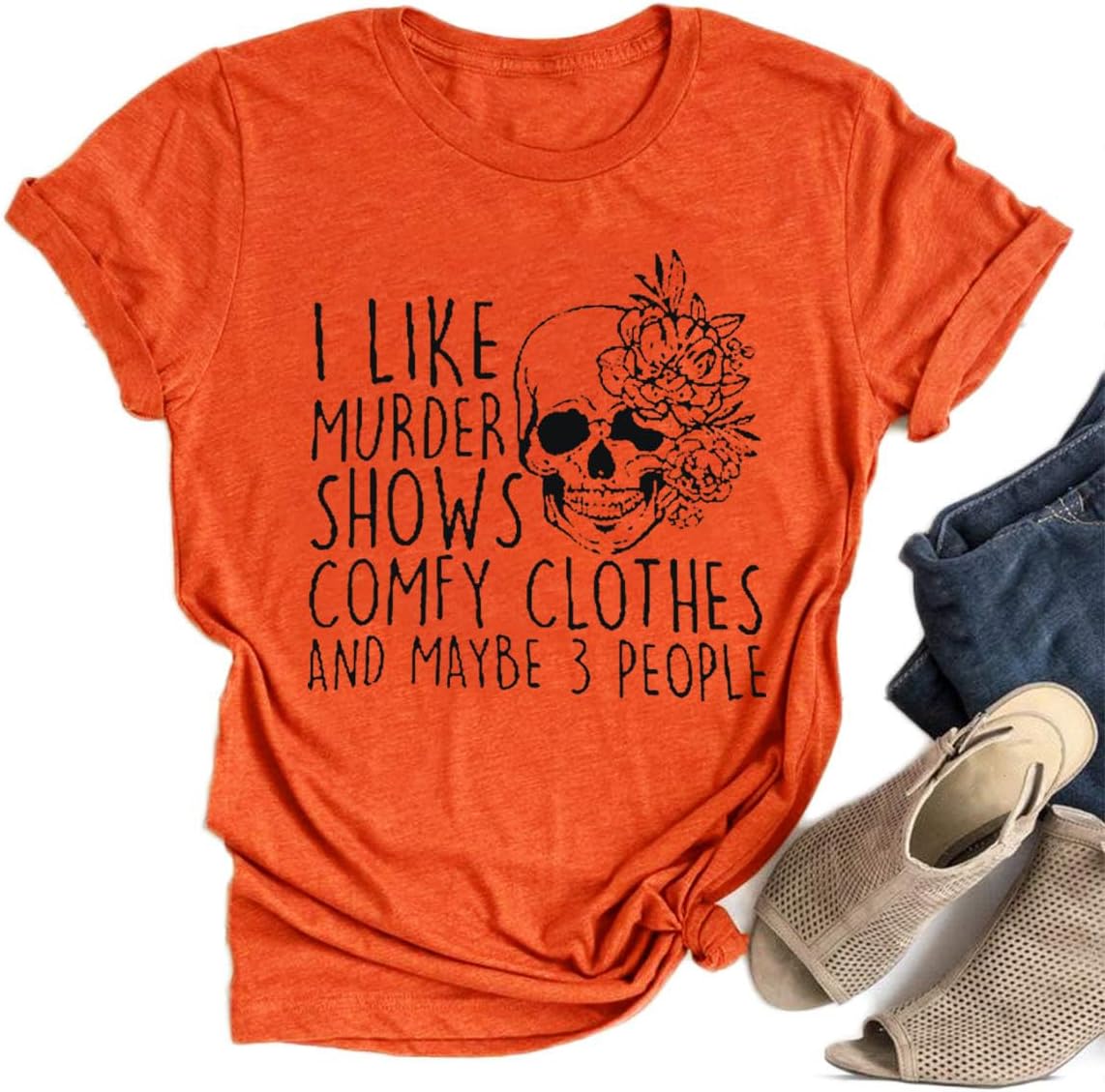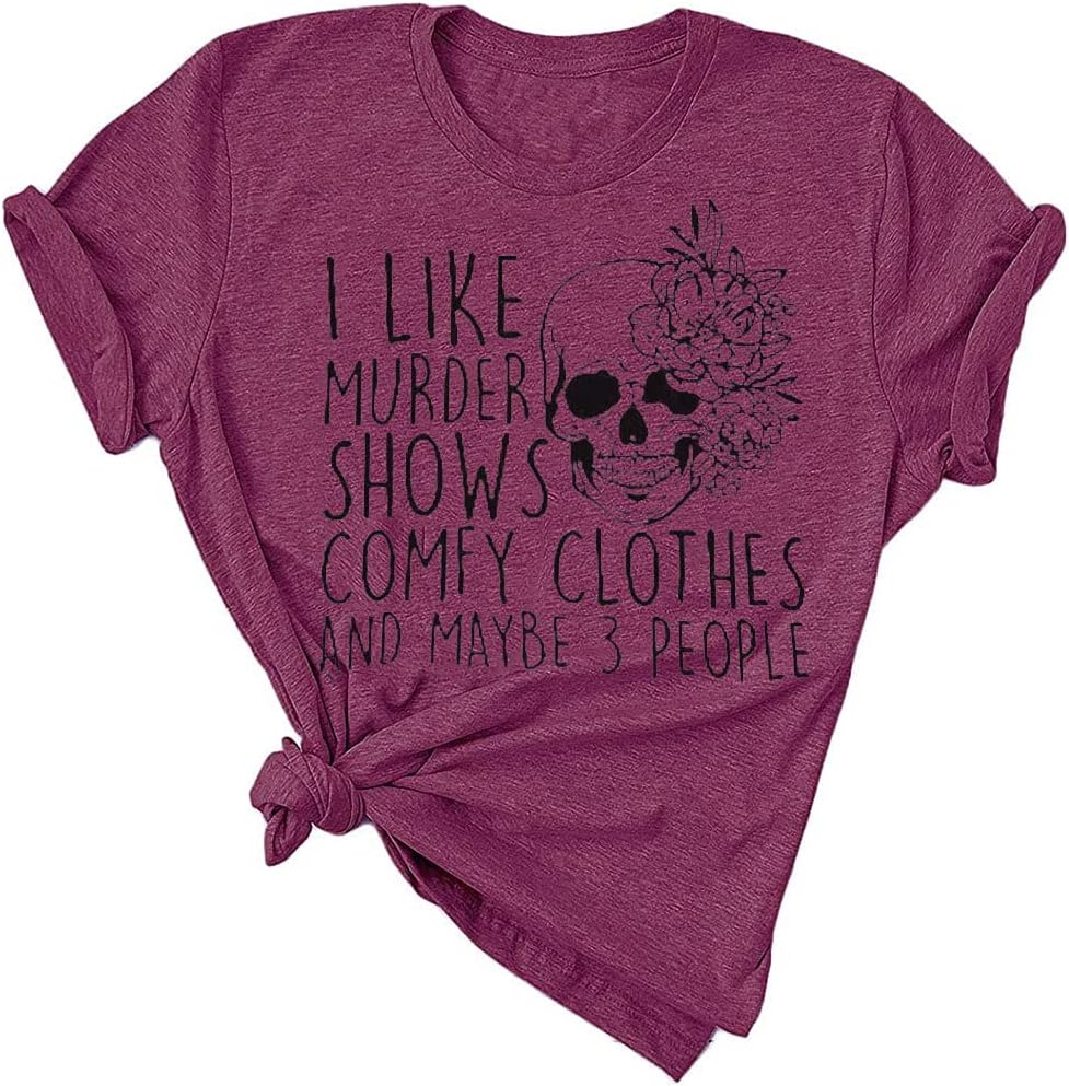 Novelty Halloween Cute Hocus Pocus Skull Printed Shirt I Like Murder Show Funny Graphic Loose Casual Cute Short Sleeve