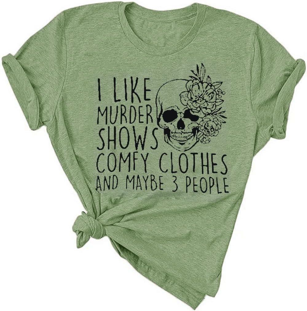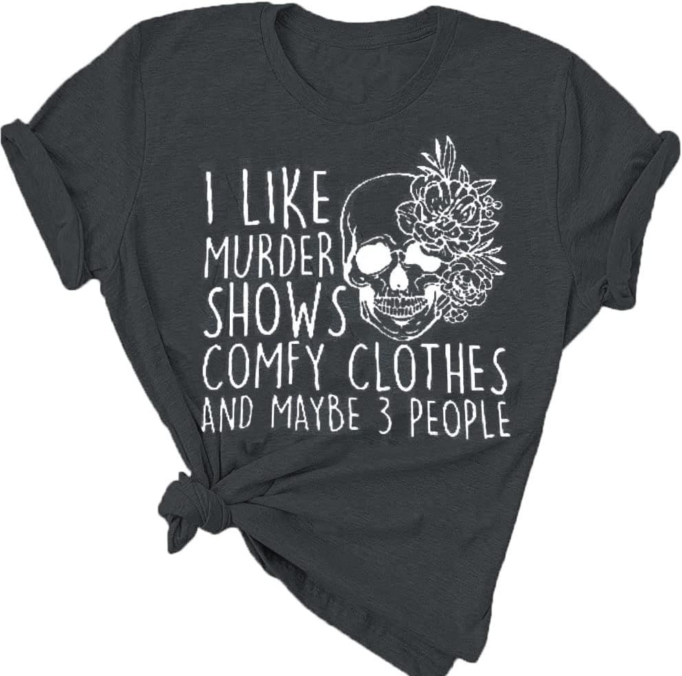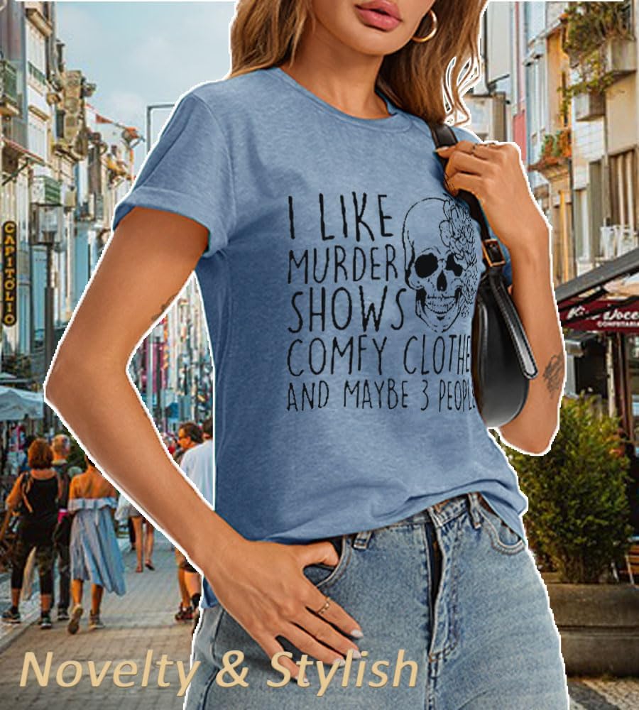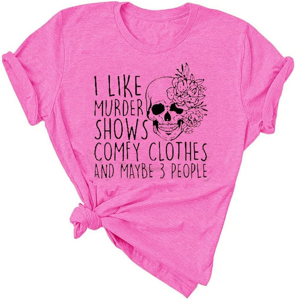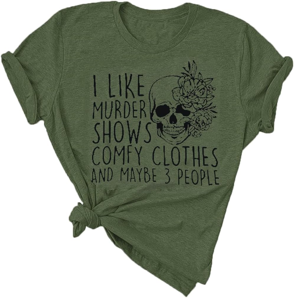 Novelty Halloween Cute Hocus Pocus Skull Printed Shirt I Like Murder Show Funny Graphic Loose Casual Cute Short Sleeve