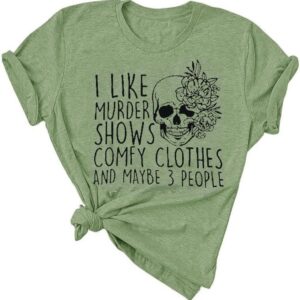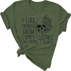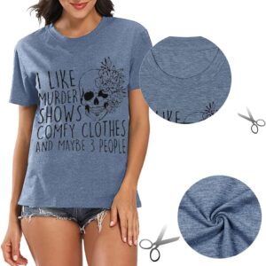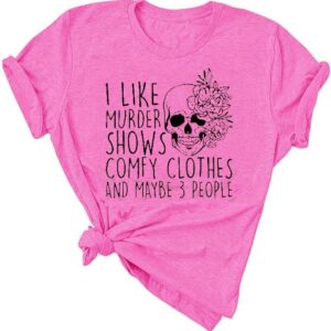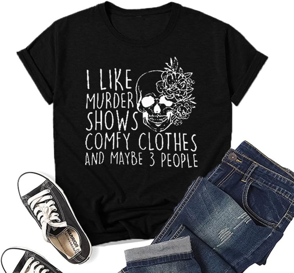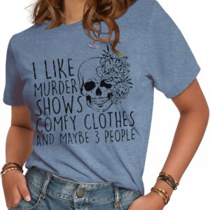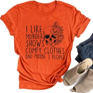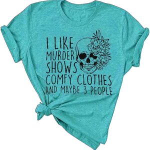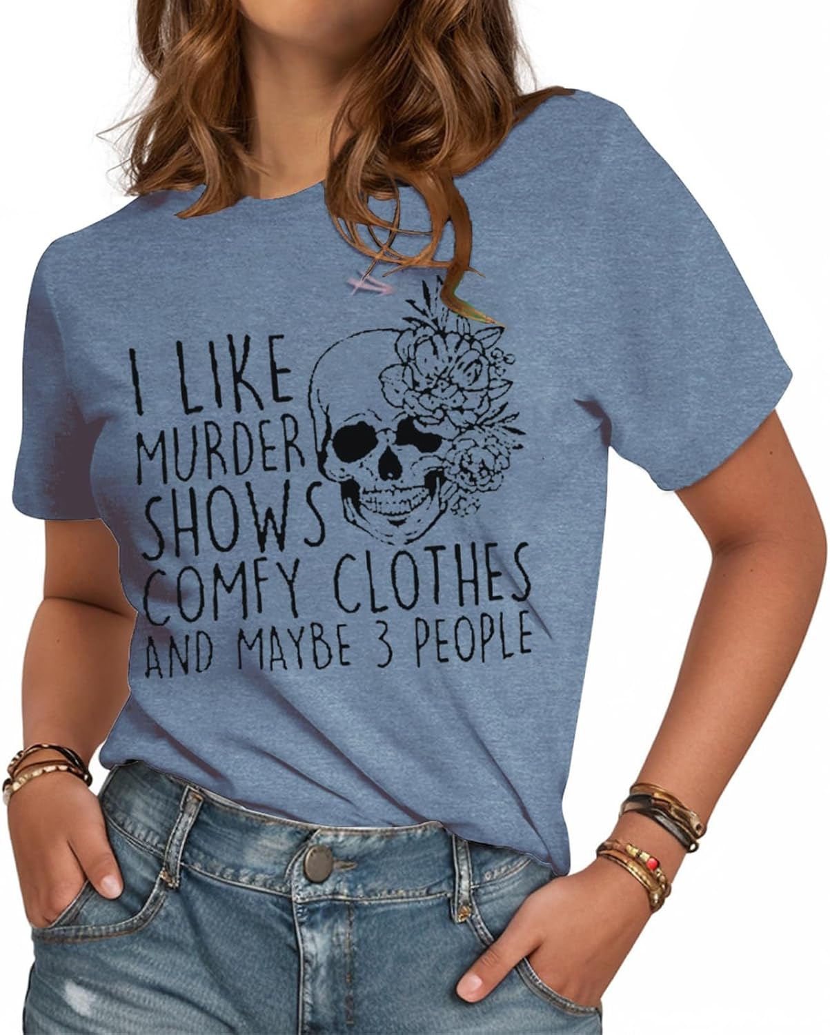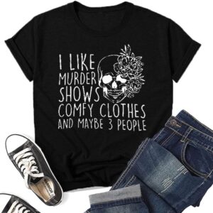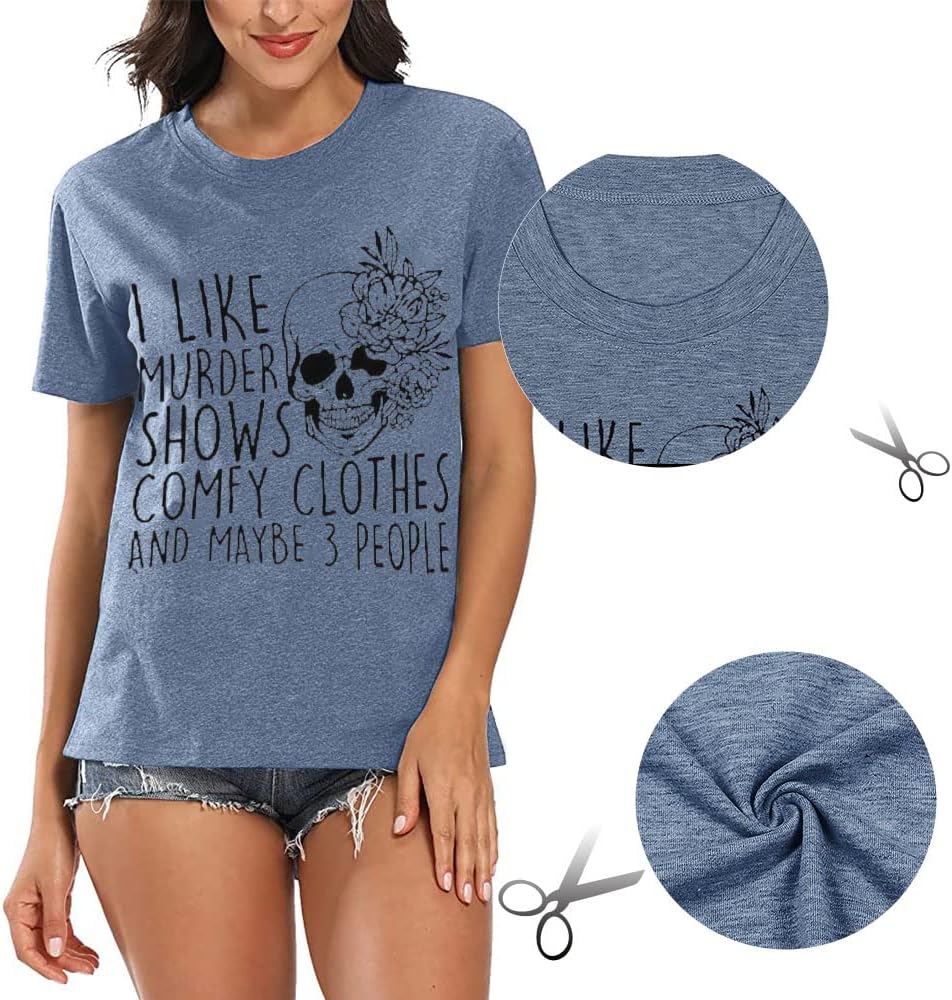 Novelty Halloween Cute Hocus Pocus Skull Printed Shirt I Like Murder Show Funny Graphic Loose Casual Cute Short Sleeve