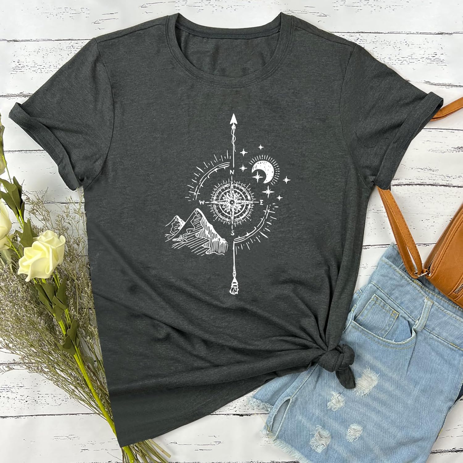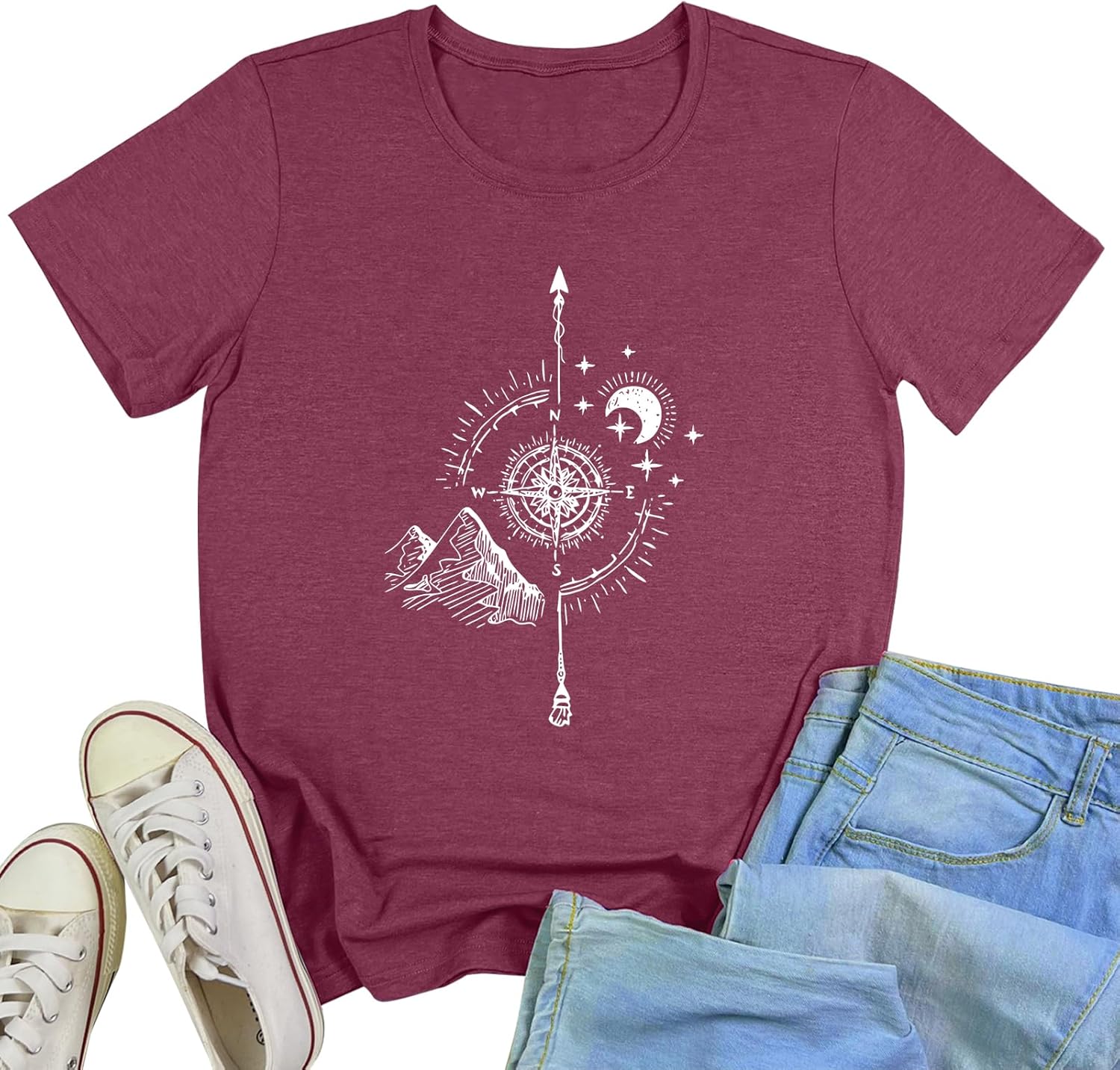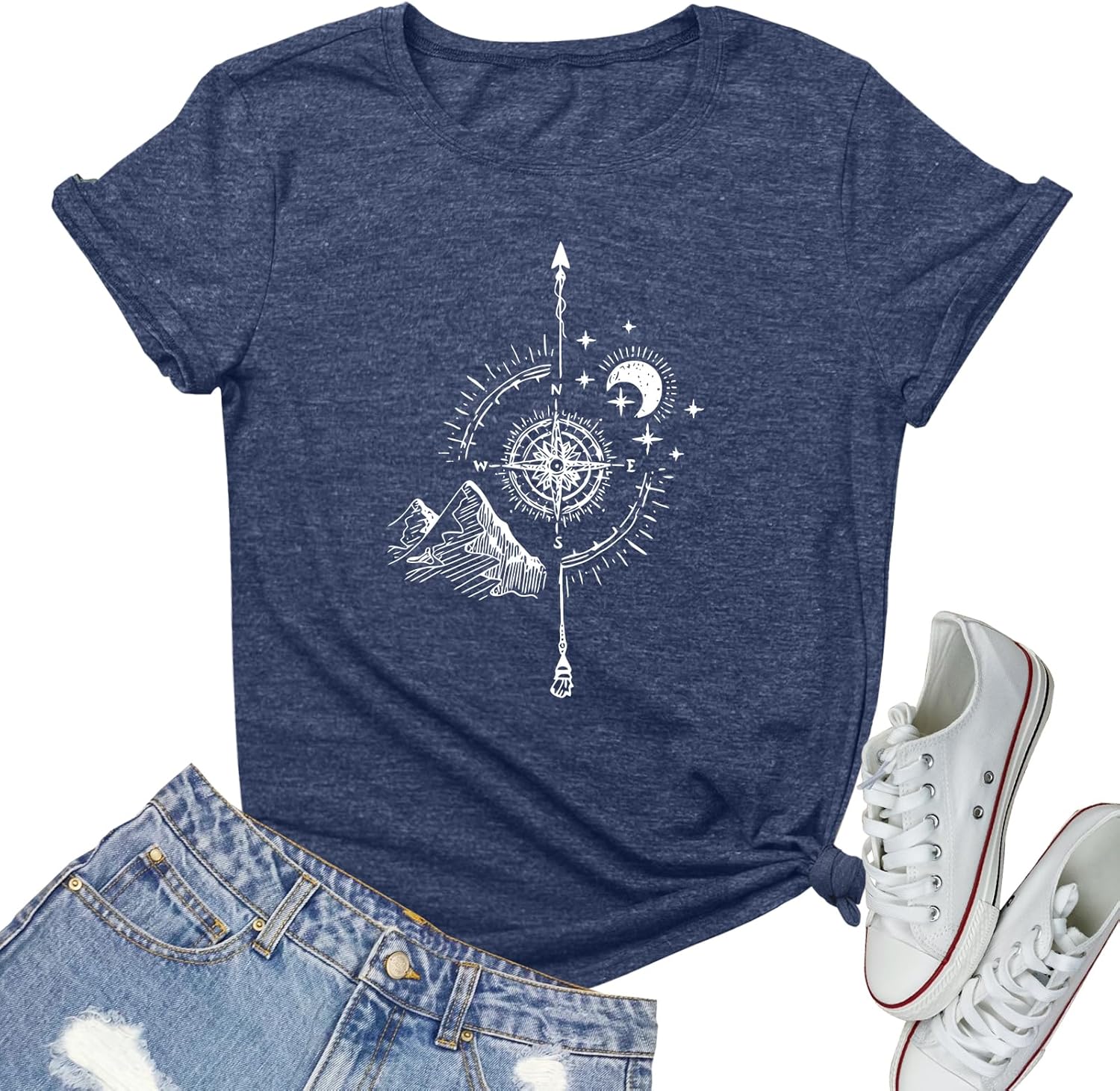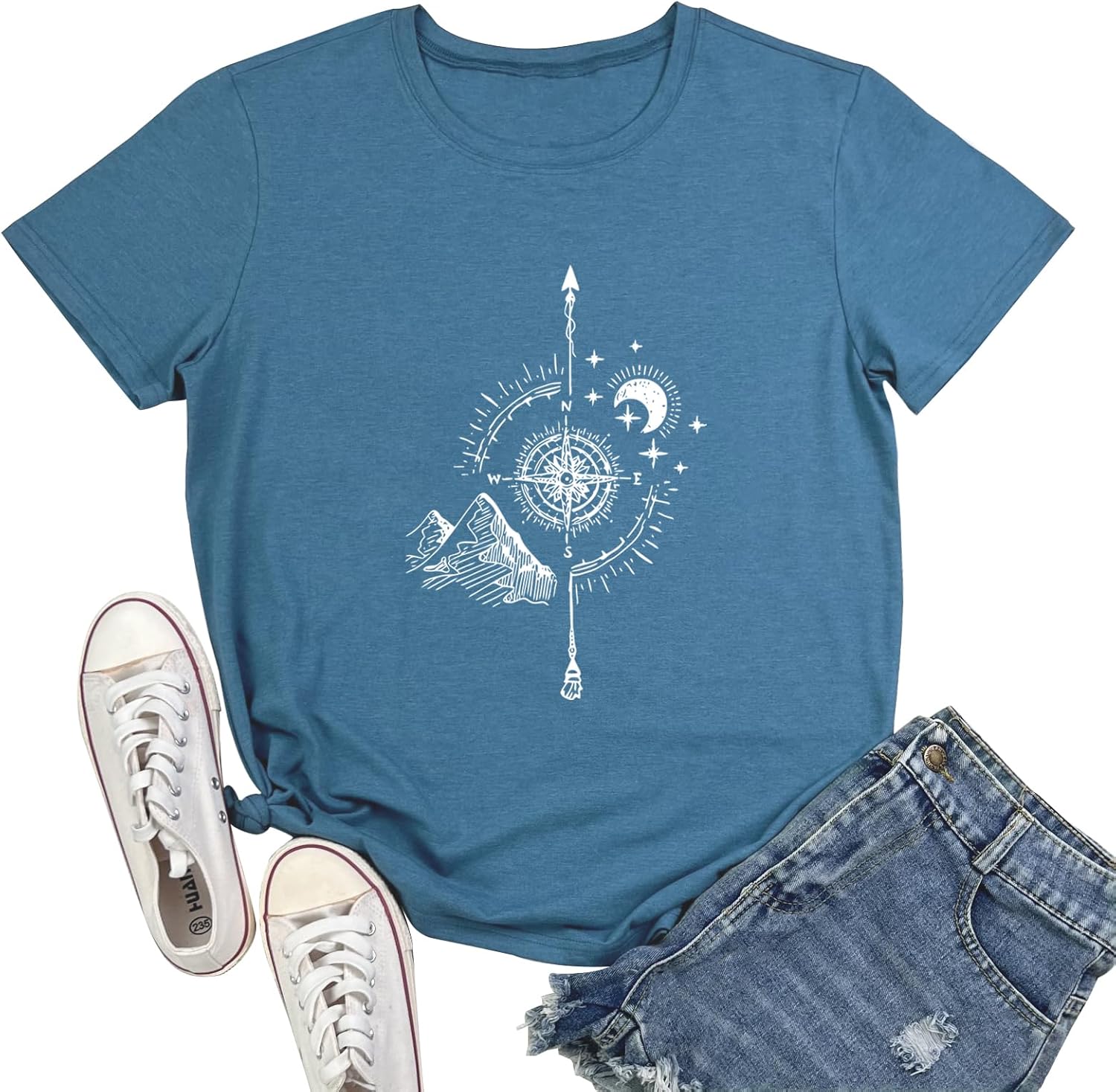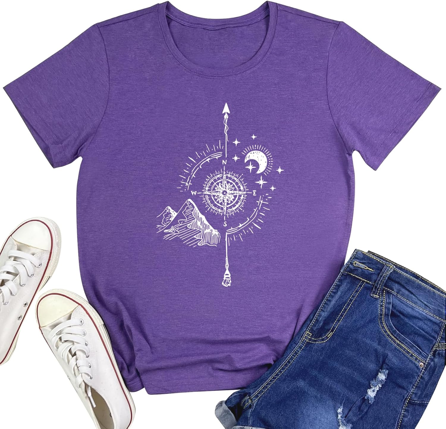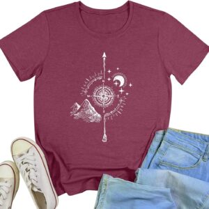 YITAN Women Soft Cute Tops Compass Graphic Tees